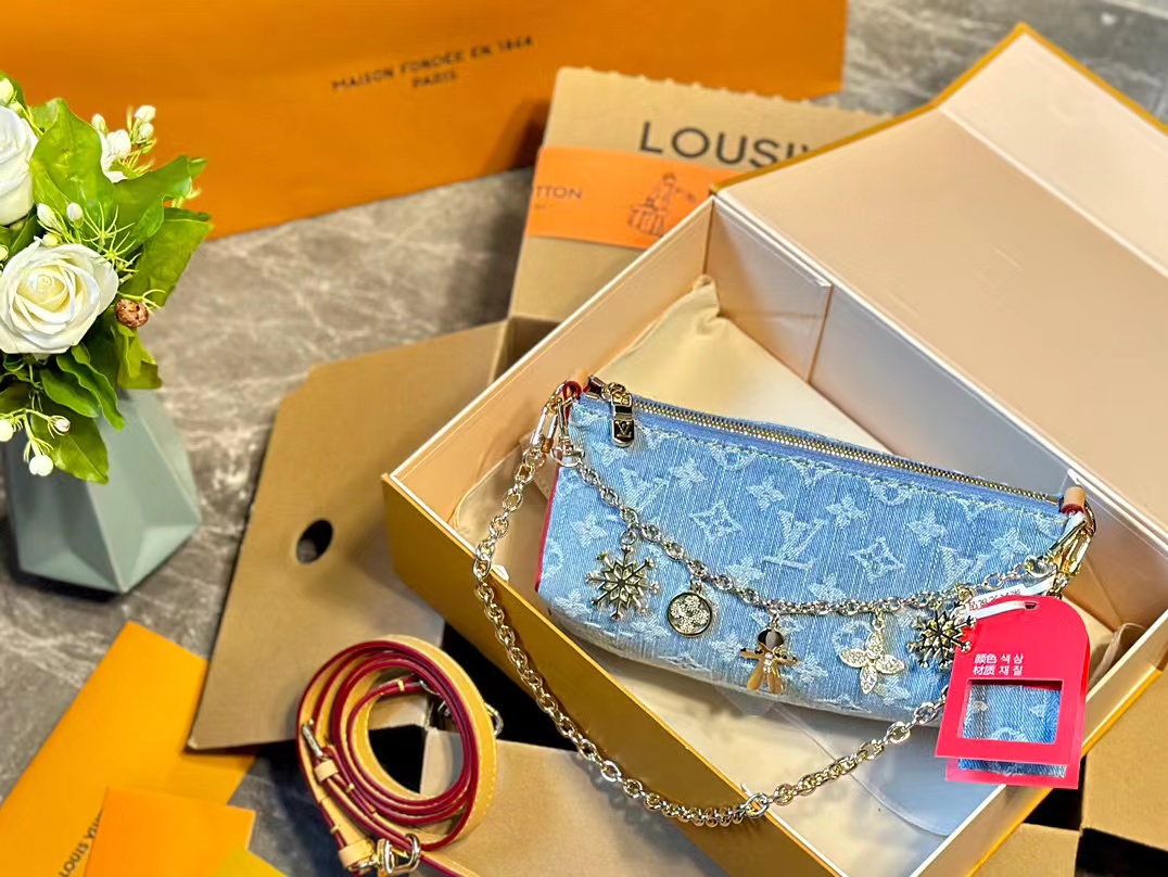LV 四つ葉のクローバー ジャガード デニム チェーンバッグ【50%割引+送料無料】