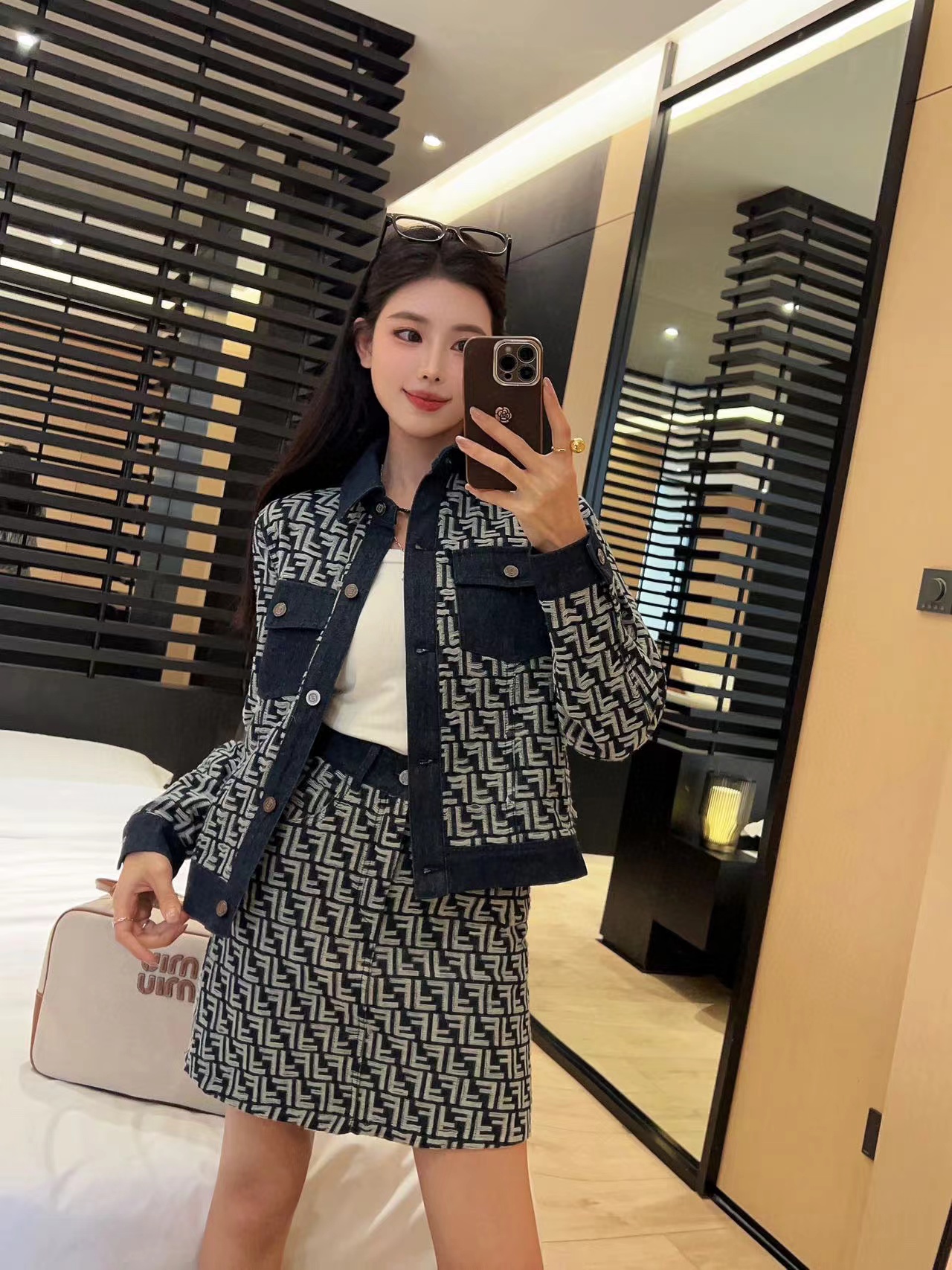 FEND1 高級デニムジャケット+スカート2点セット【50%割引+送料無料】