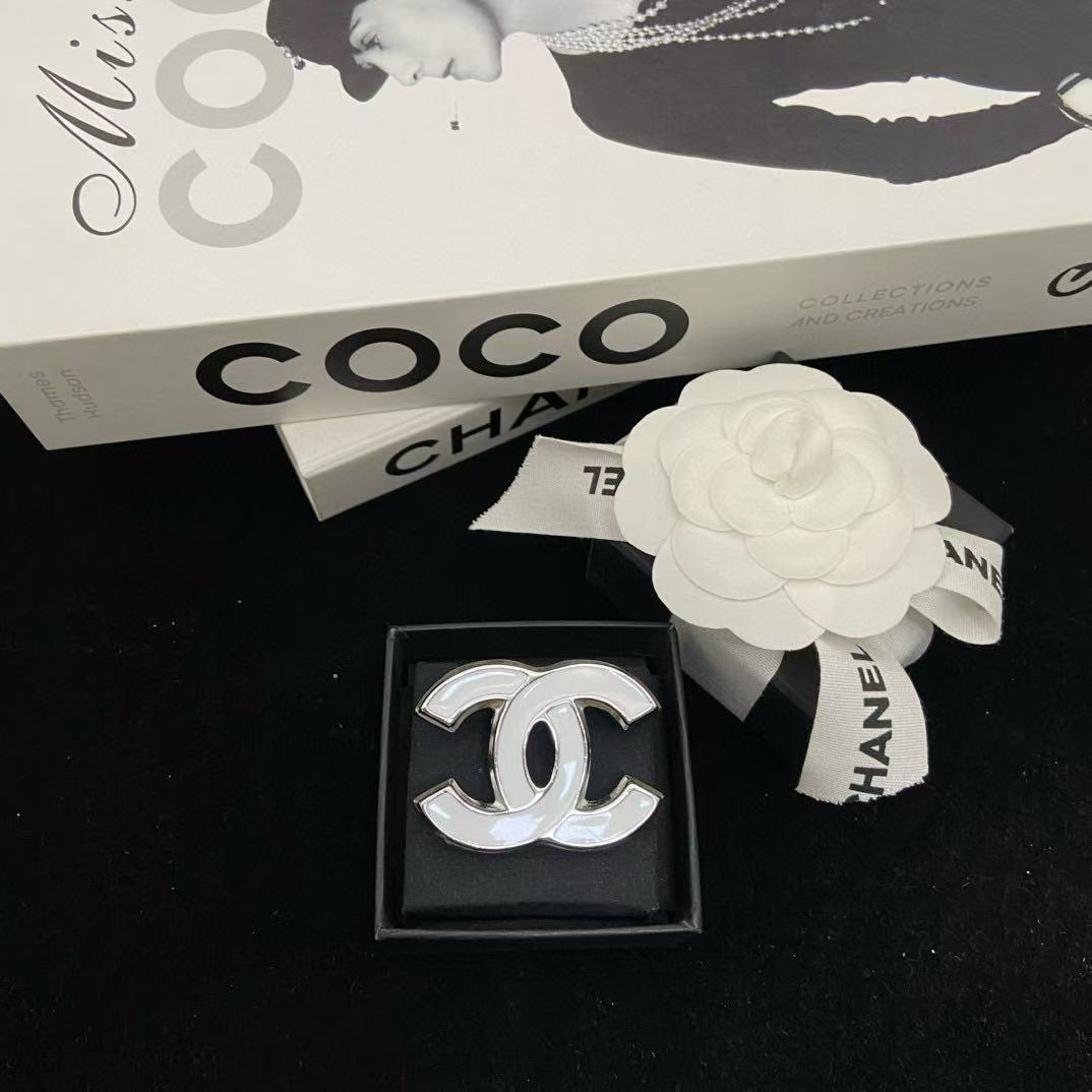 CHANE1 ホワイト ダブルC ブローチ【50%割引+送料無料】
