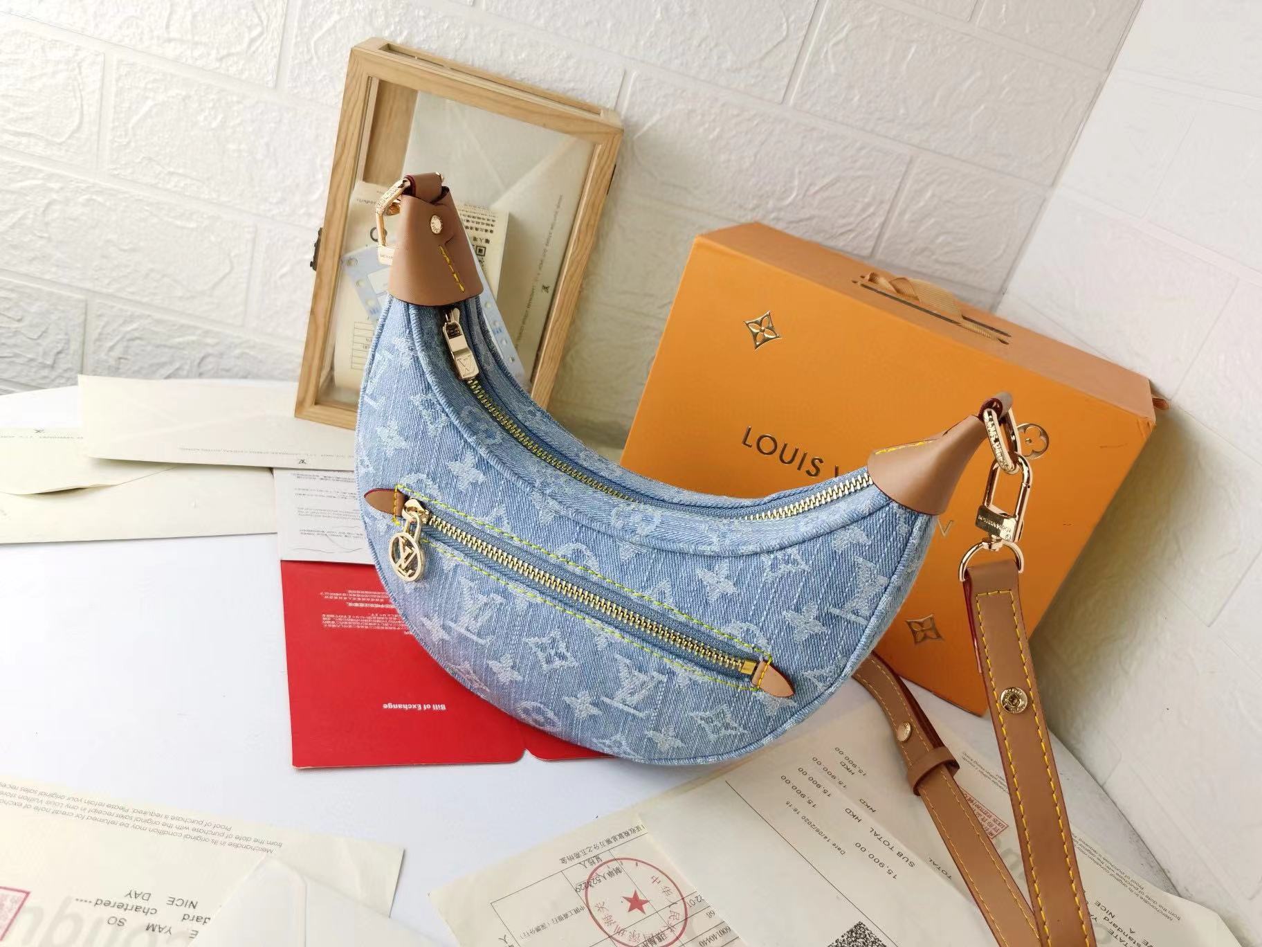 LV老眼用デニムクレセントバッグ【50%割引+送料無料】