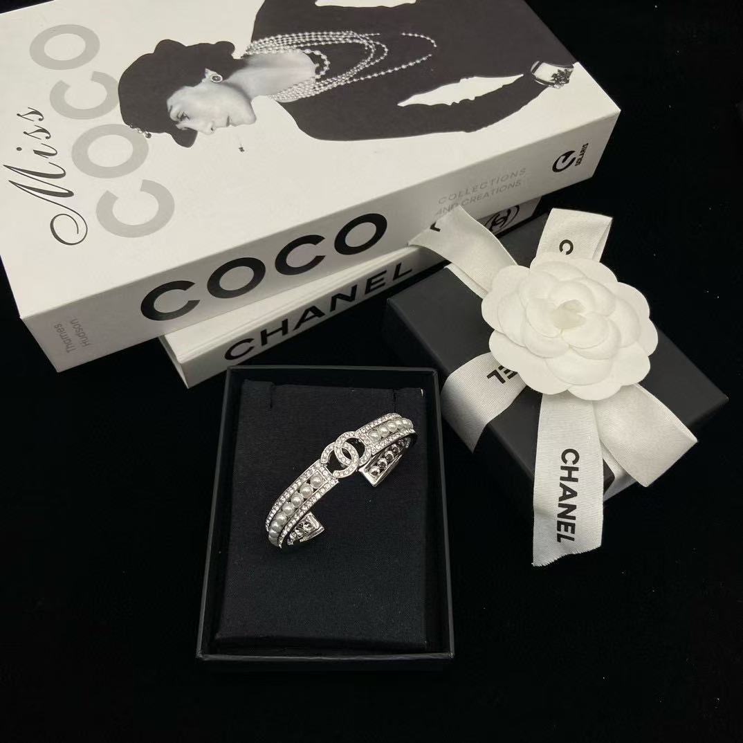 CHANE1 フルダイヤモンド ダブルC パールブレスレット【 50%割引+送料無料】