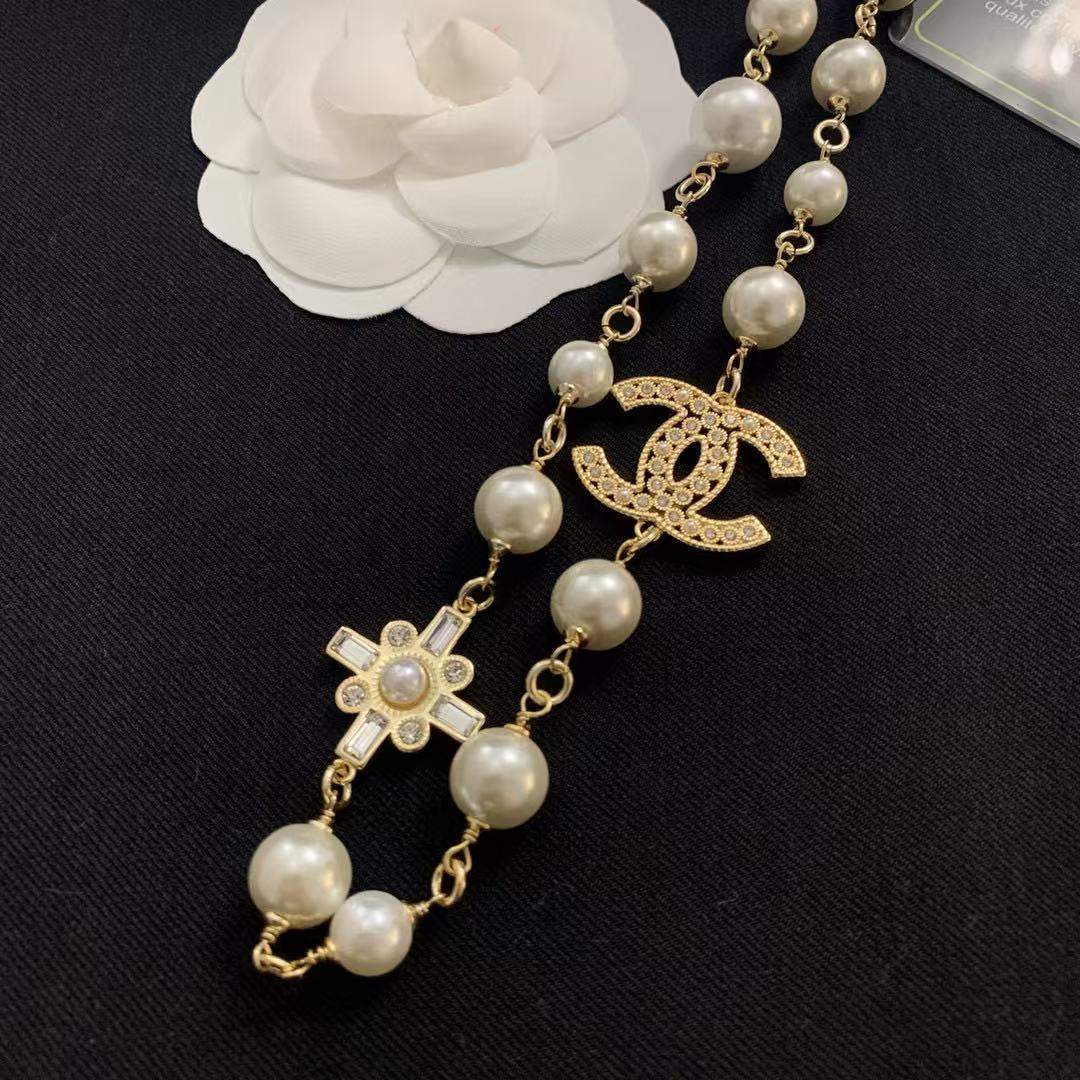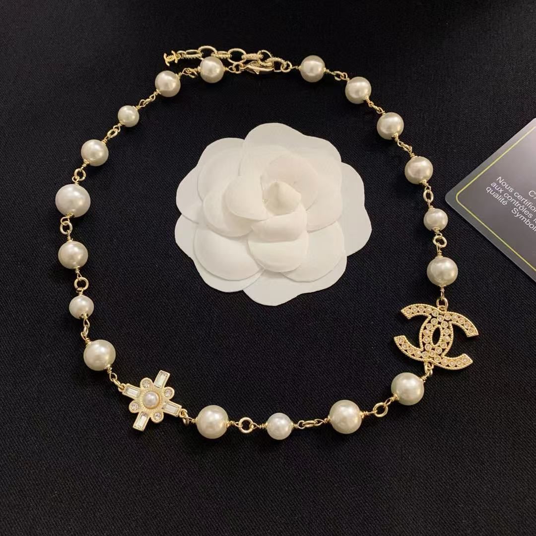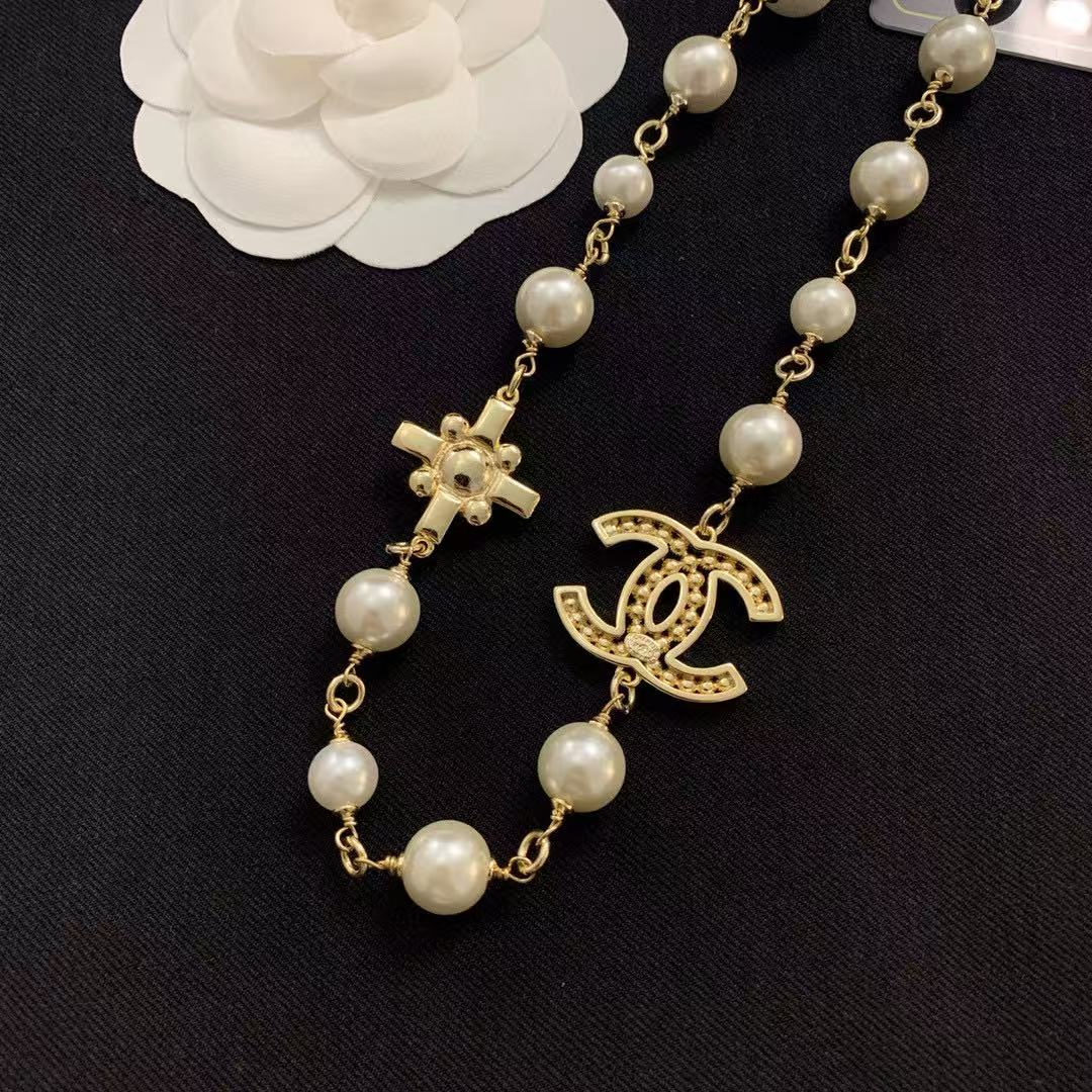 CHANE1 ダブルCパールネックレス