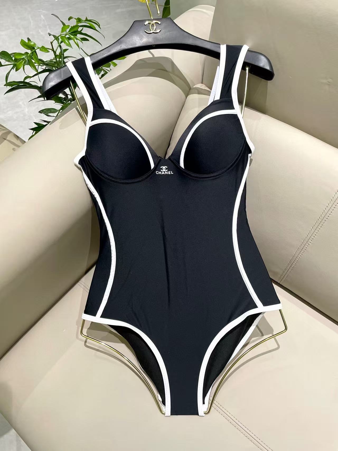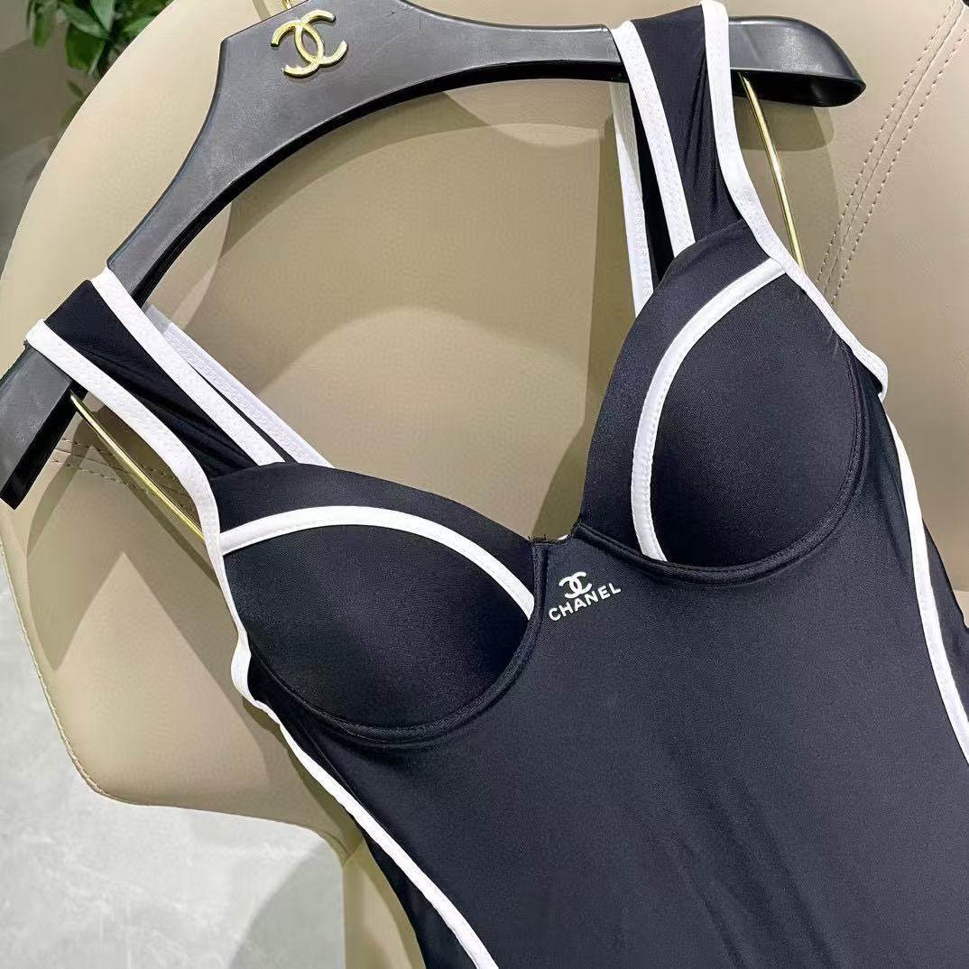 CHANE1 ブラック&ホワイト ダブルC ワンピース水着【 50%割引+送料無料】