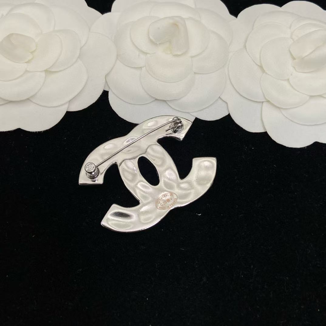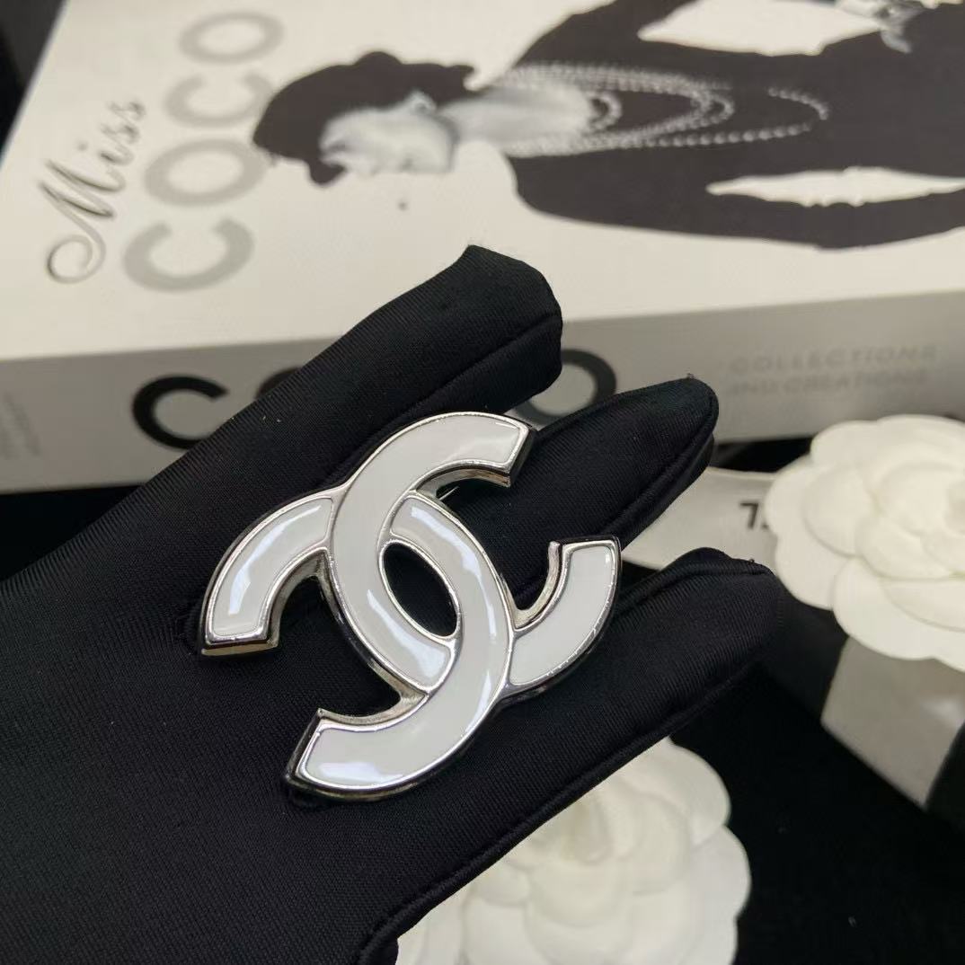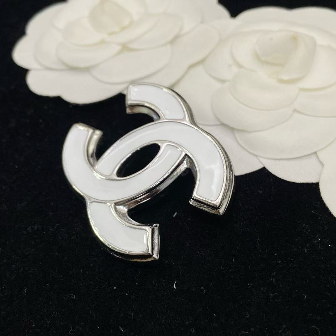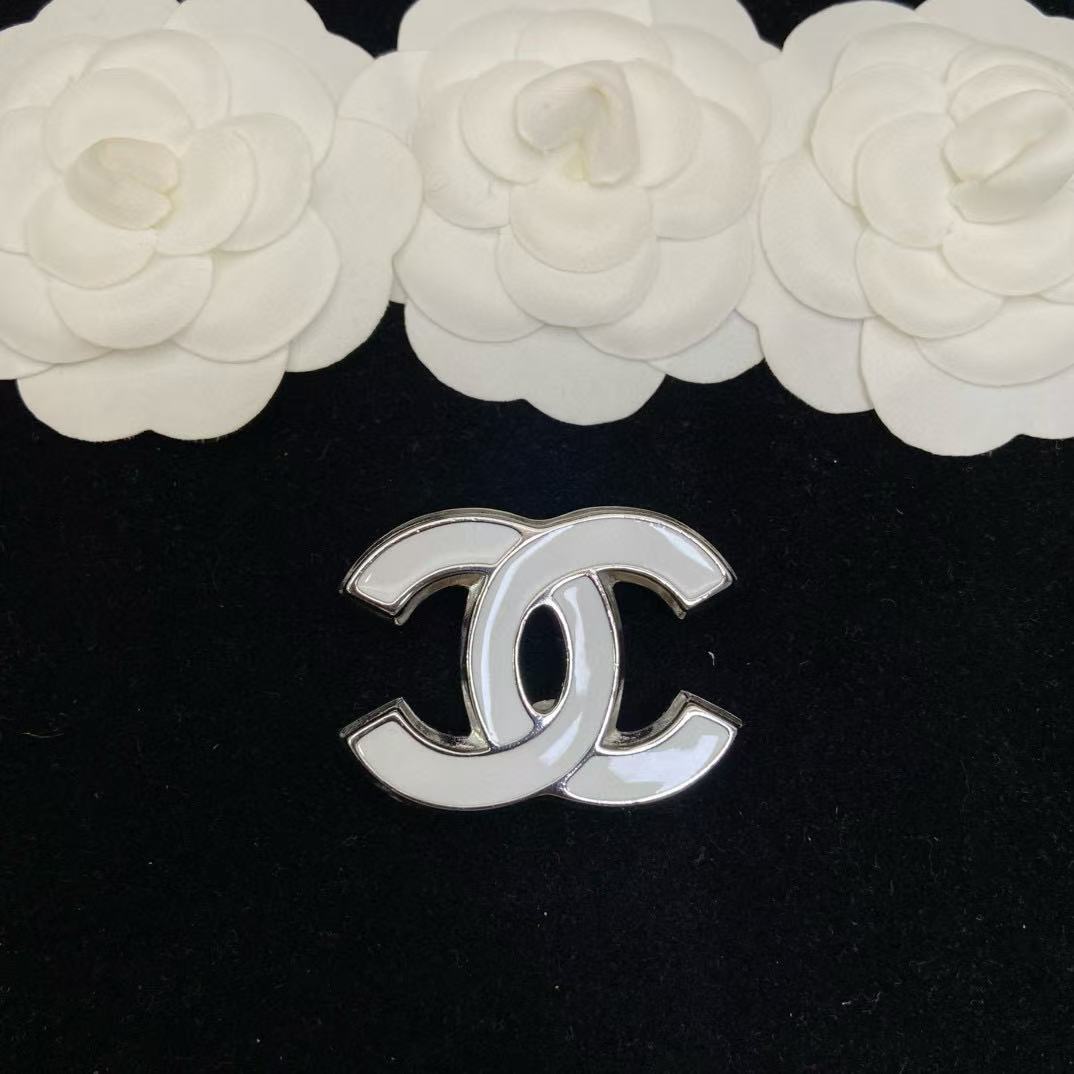 CHANE1 ホワイト ダブルC ブローチ