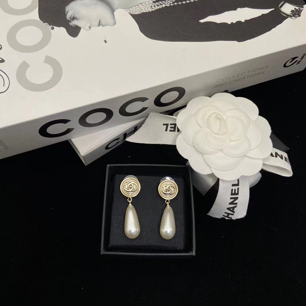 CHANE1 ラインストーン レター パール ウォータードロップ イヤリング【 50%割引+送料無料】
