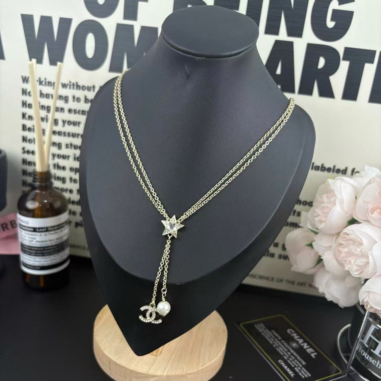 CHANE1 ダブルCパールハートナンバーネックレス【50%割引+送料無料】