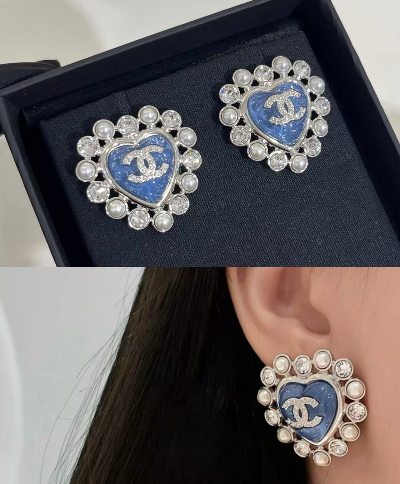 CHANE1 ハートブルーパールイヤリング【 50%割引+送料無料】