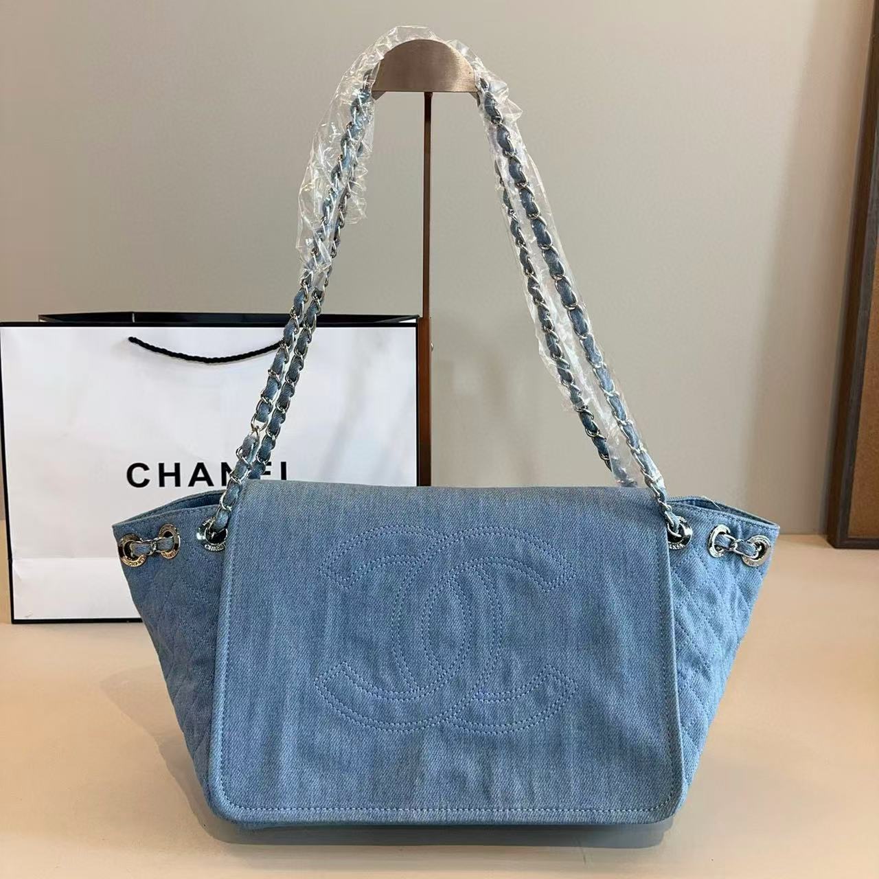 CHANE1 ダブルC デニム ショッピングバッグ【 50%割引+送料無料】