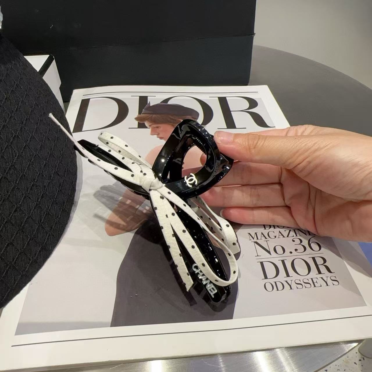 CHANE1 黒と白の水玉模様のヘアピン【50%割引+送料無料】