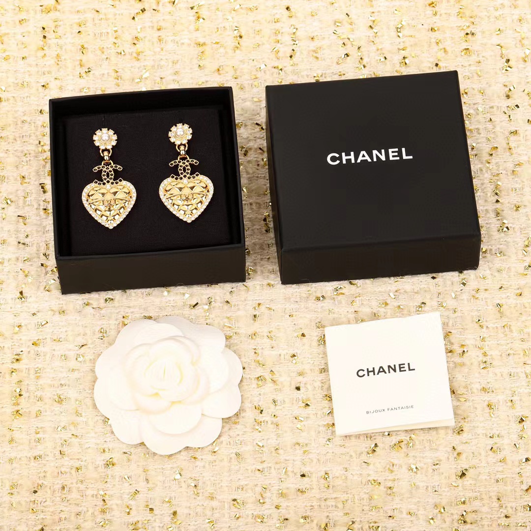 CHANE1 ハート ダイヤモンド ダブル C スタッド ピアス【50%割引+送料無料】