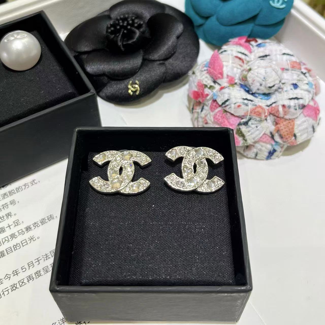 CHANE1 ダブルC ラインストーン イヤリング【50%割引+送料無料】