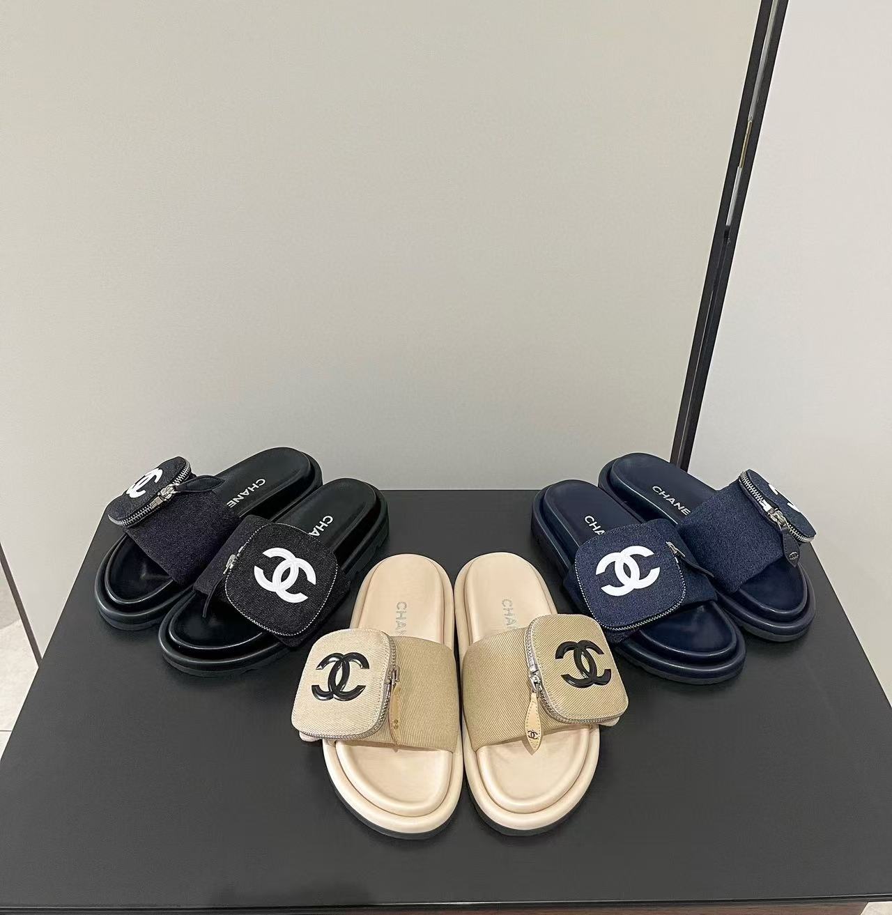 CHANE1 高品質 大きなロゴ ジッパー 厚底スリッパ【50%割引+送料無料】