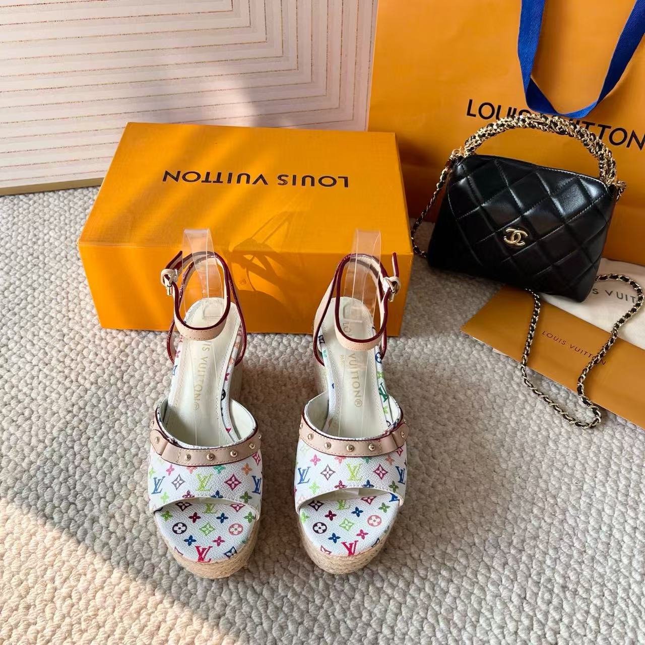 LV 高品質ストローハイヒールサンダル【50%割引+送料無料】
