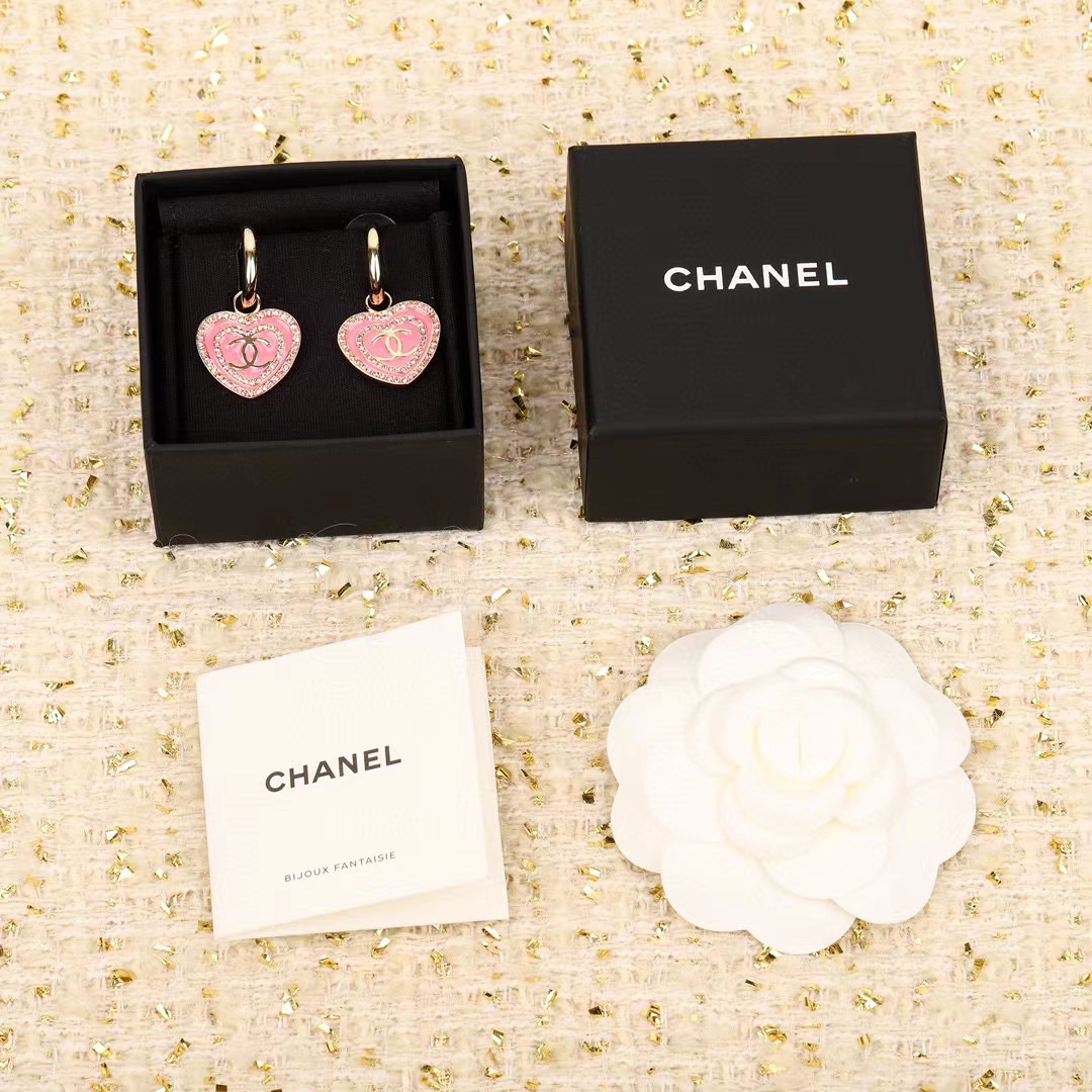 CHANE1 ピンク ハート ダブル C ピアス【50%割引+送料無料】
