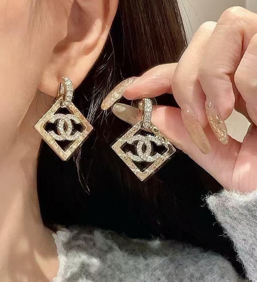 CHANE1 フルダイヤモンド ダブルC スクエアイヤリング【 50%割引+送料無料】