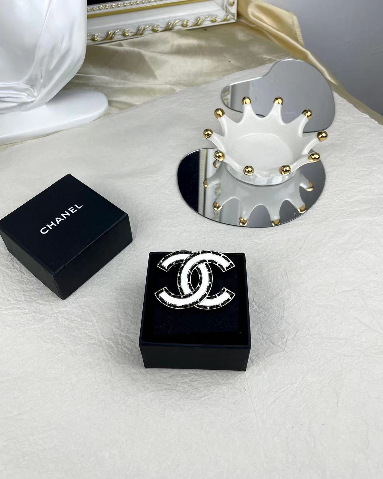 CHANE1 ダブルC ホワイトブローチ【50%割引+送料無料】