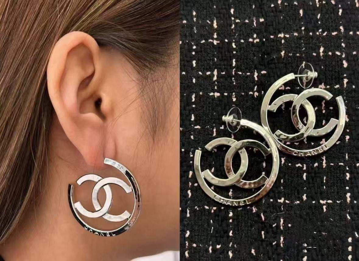 CHANE1 ダブルC 中空イヤリング【 50%割引+送料無料】