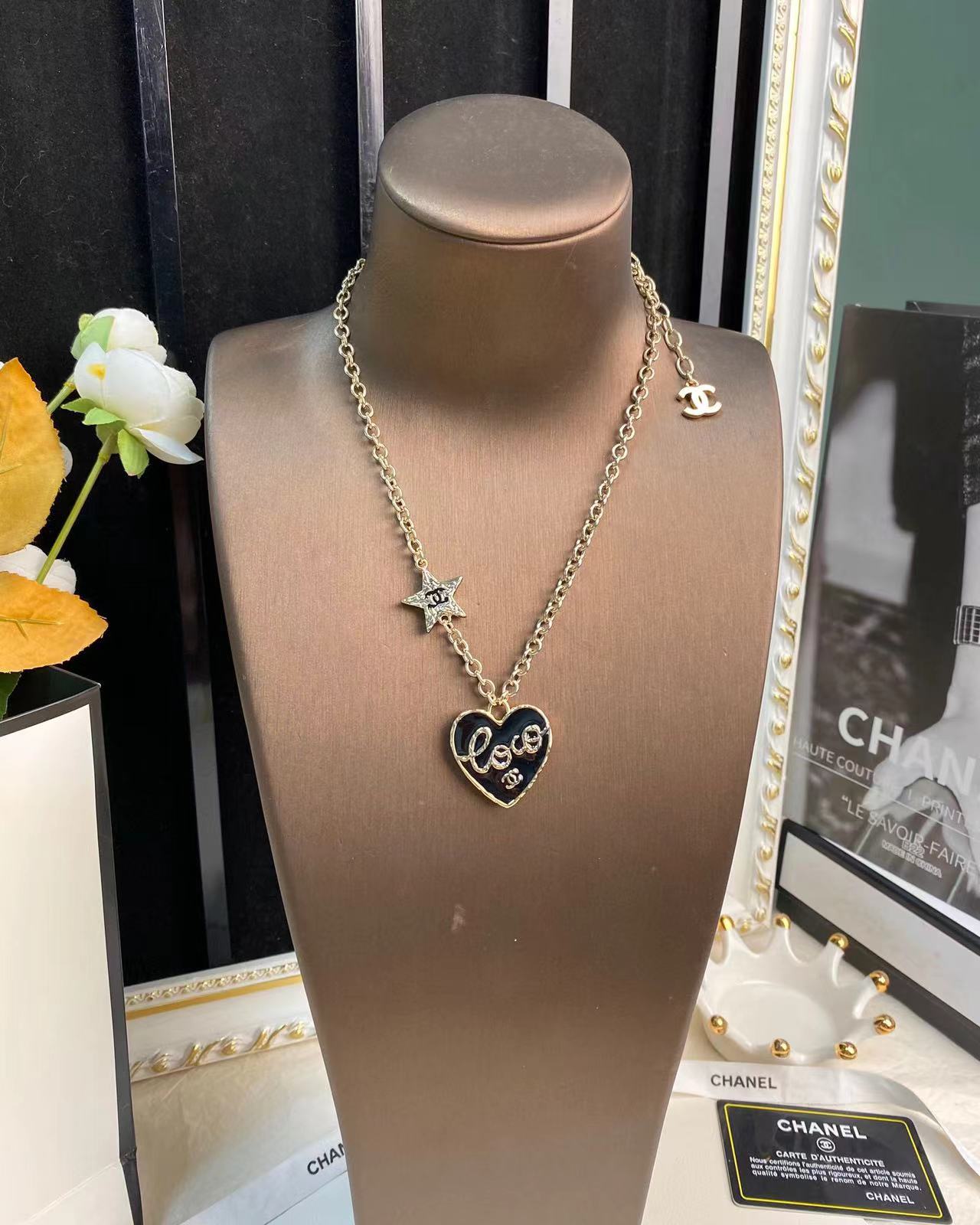 CHANE1 ピーチハート ブラックエナメルネックレス【50%割引+送料無料】