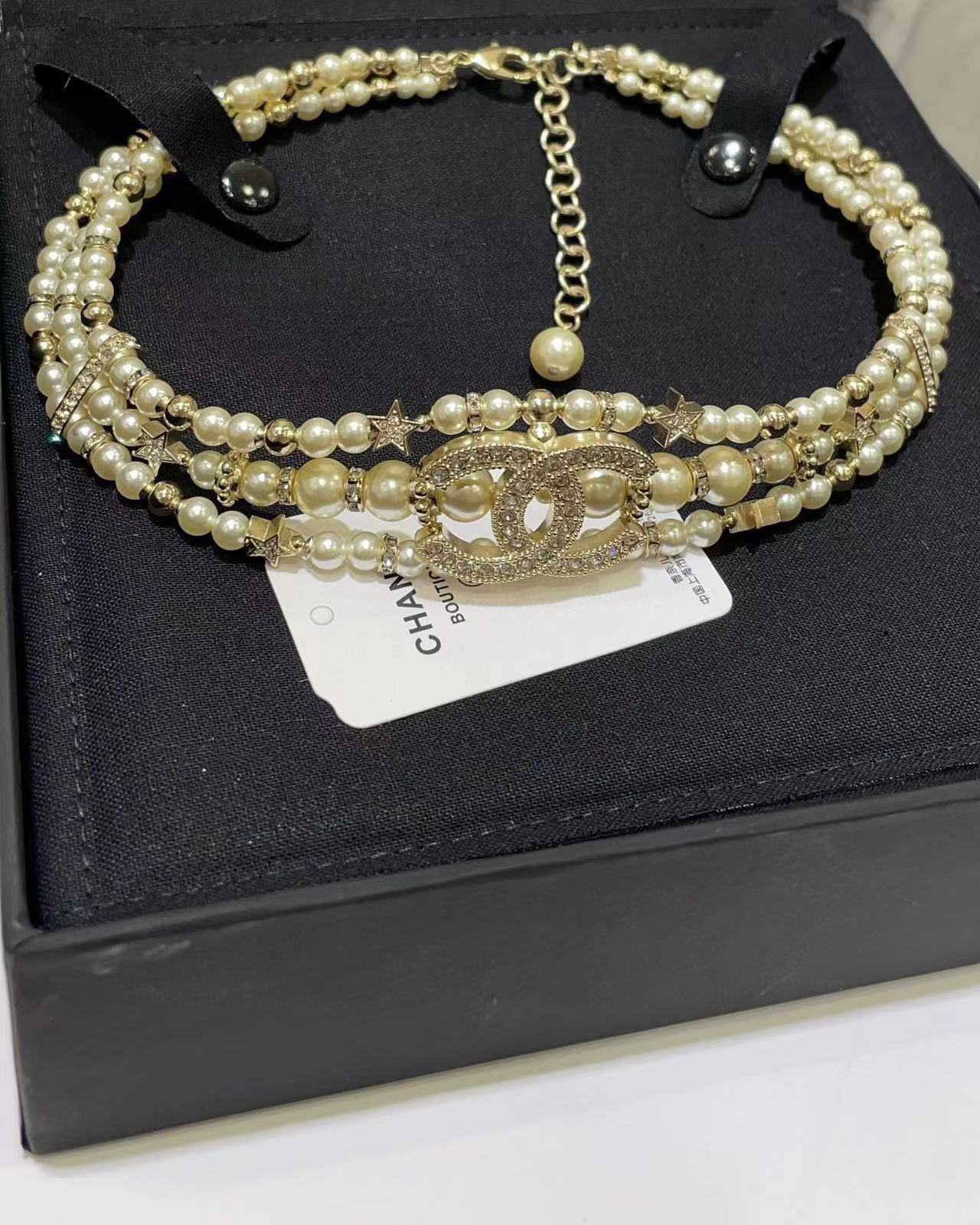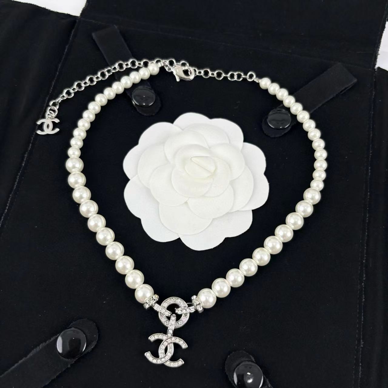 CHANE1 ダブルC パール&ダイヤモンドネックレス【 50%割引+送料無料】