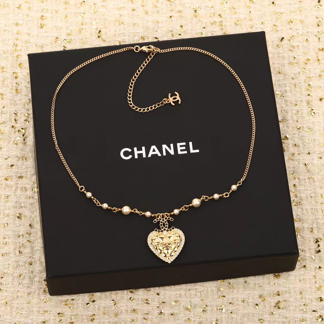 CHANE1 ダブルC ハートパールネックレス【50%割引+送料無料】