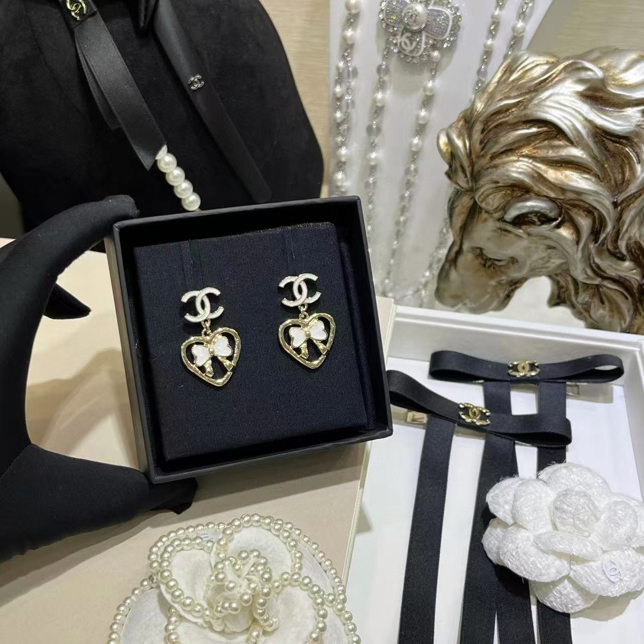 CHANE1 ダブルC ボウ ハート イヤリング【 50%割引+送料無料】