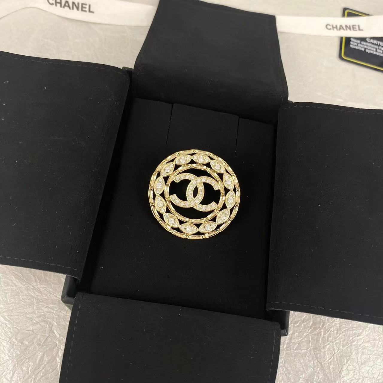 CHANE1 シンプル ダブル C ラウンド ダイヤモンド ブローチ【50%割引+送料無料】