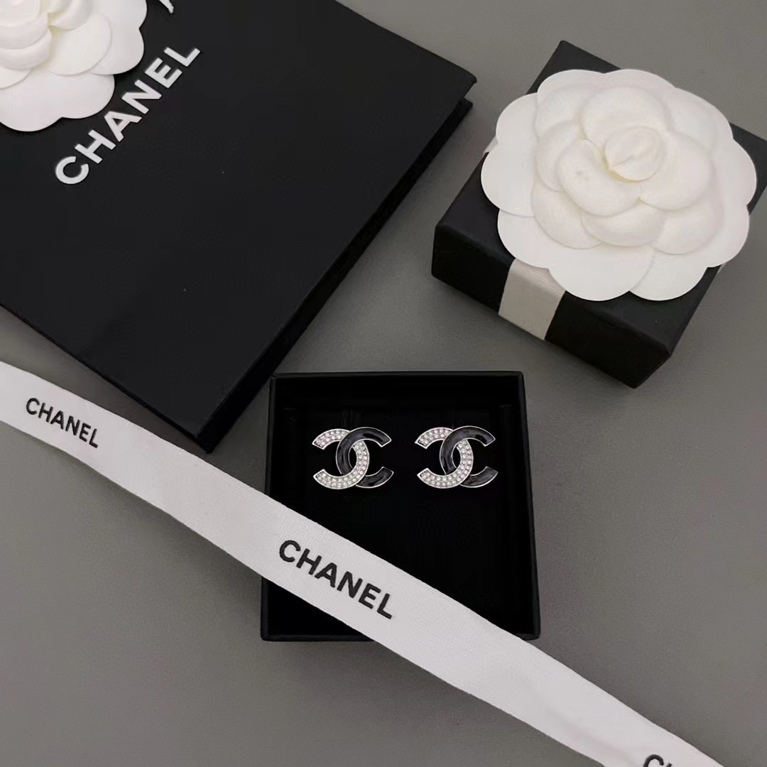 CHANE1 黒と白のダイヤモンド ダブル C スタッド ピアス【50%割引+送料無料】