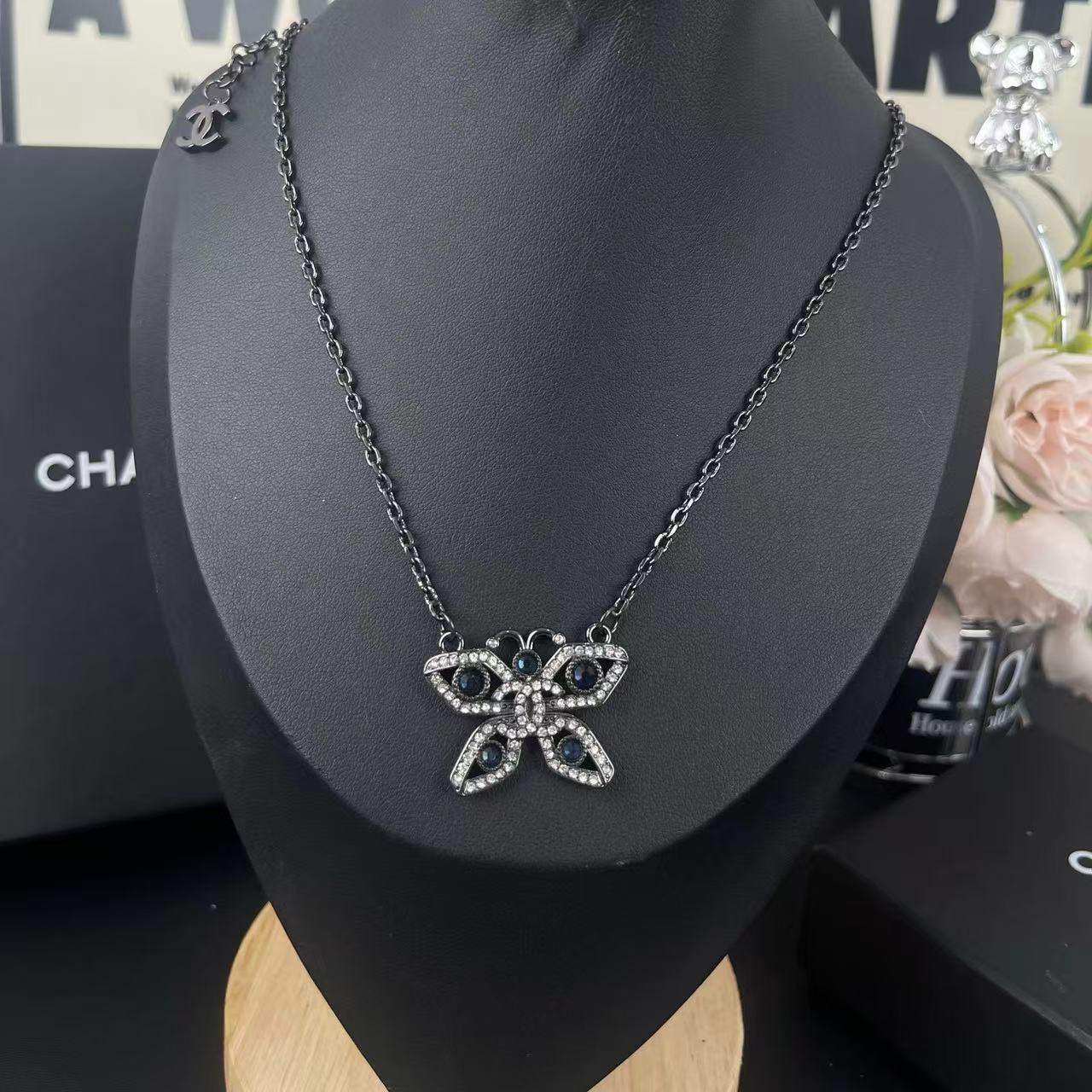 CHANE1 ダブルC バタフライ ダイヤモンド ネックレス【50%割引+送料無料】