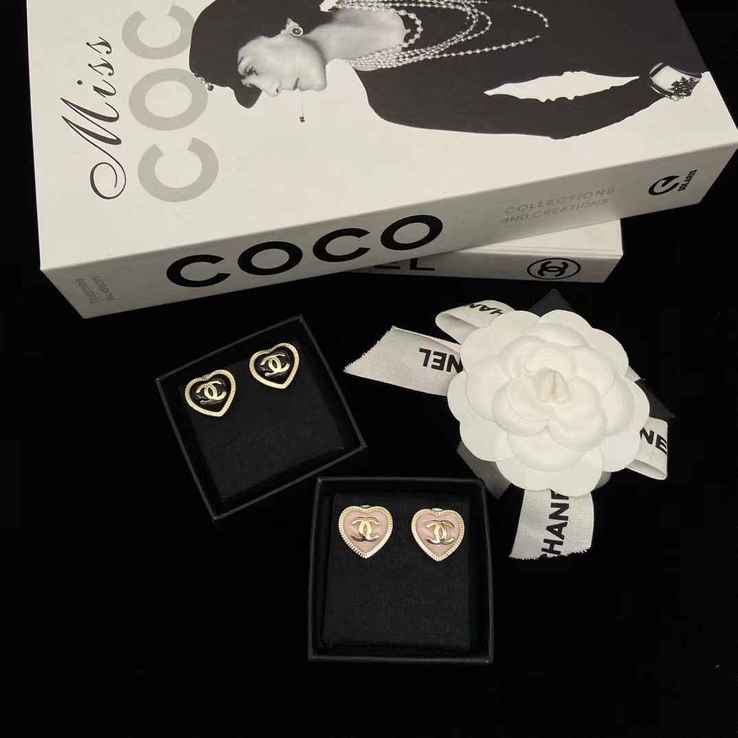 CHANE1 ハートテクスチャー ダブルC スタッドピアス【50%割引+送料無料】