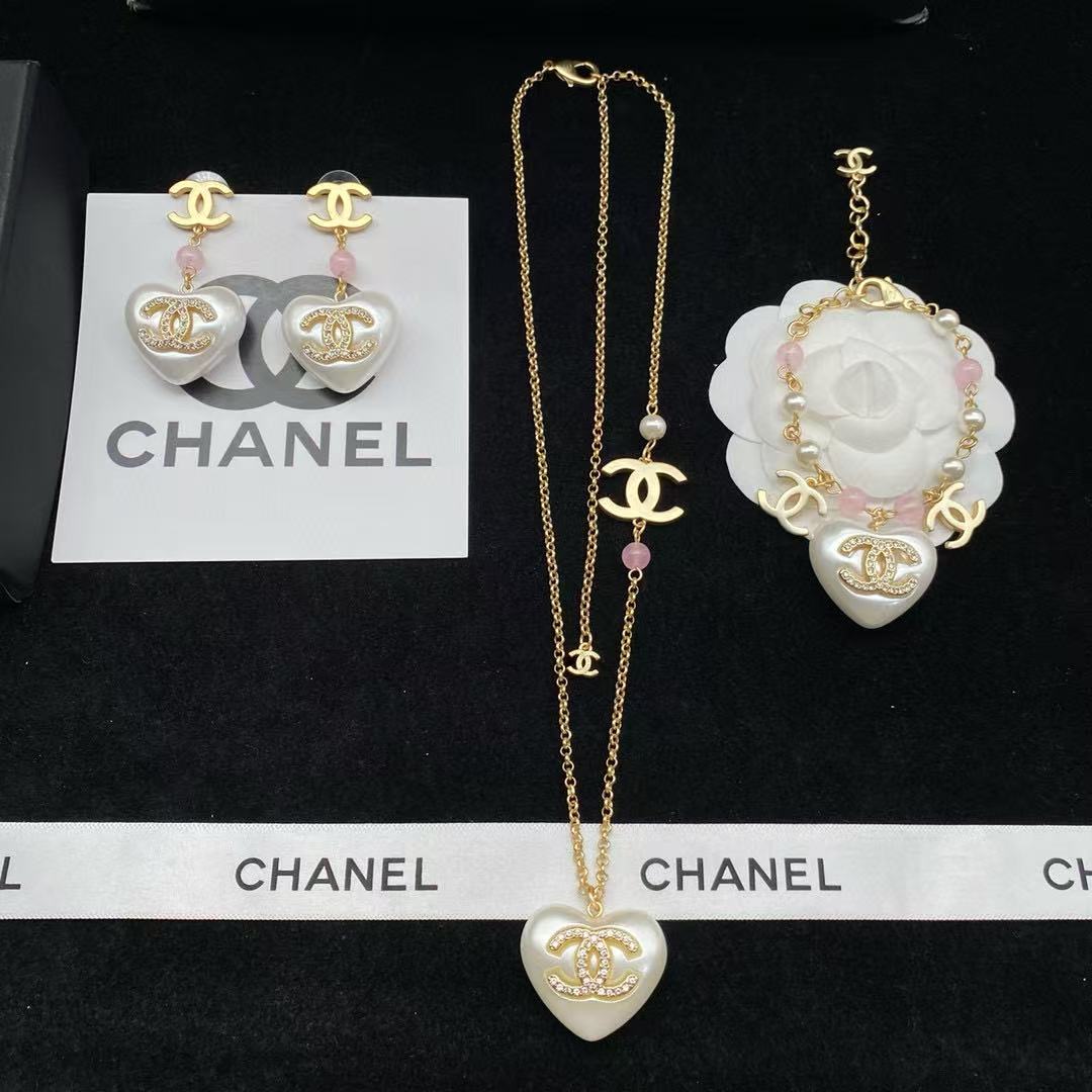 CHANE1 ハートピアス+ブレスレット+ネックレス 3点セット【50%割引+送料無料】