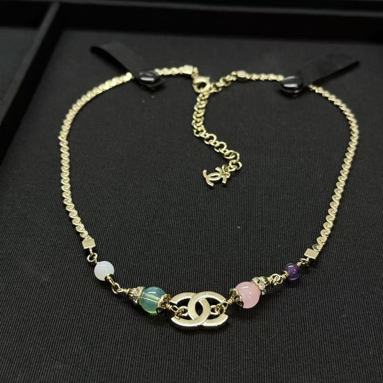 CHANE1 カラーガラス ダブルC スネークボーンネックレス【50%割引+送料無料】
