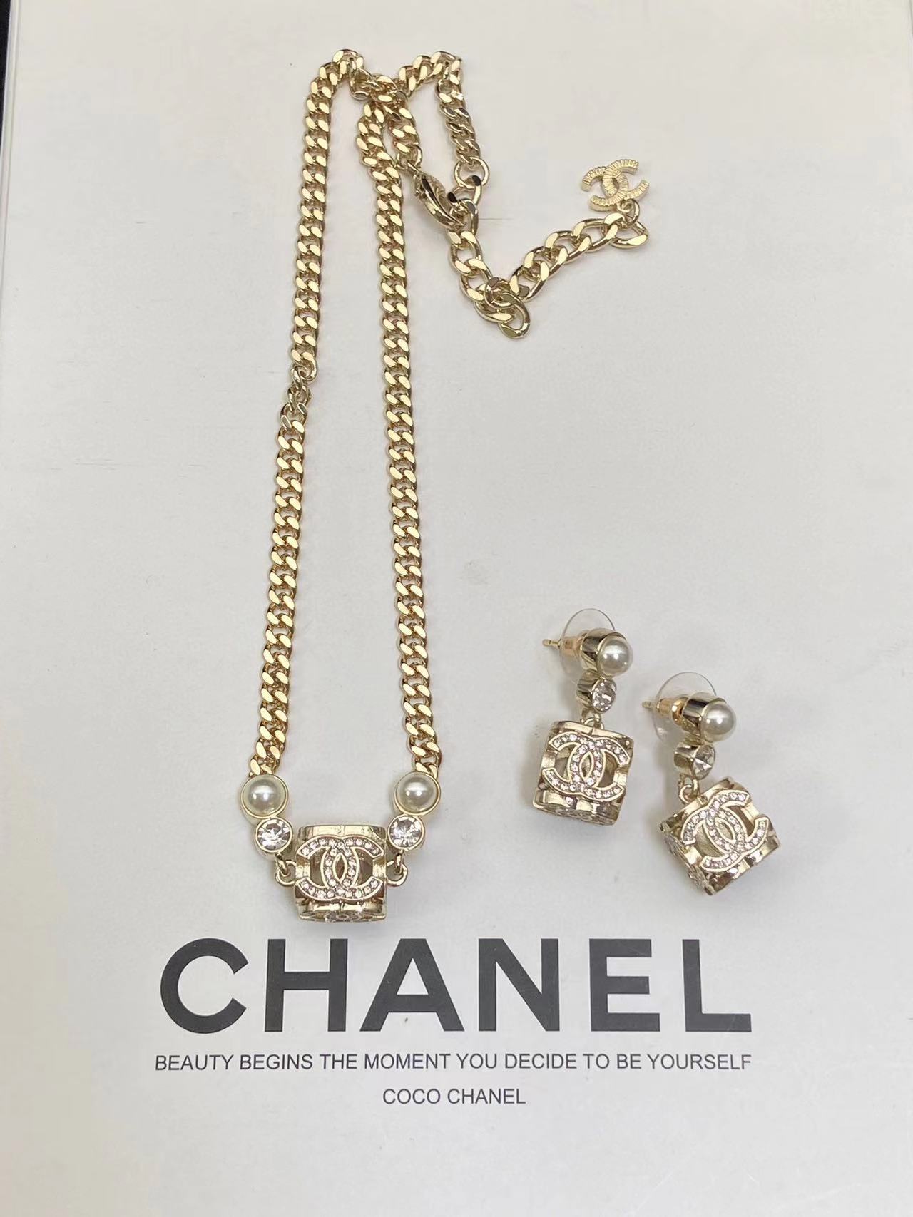 CHANE1 ダイヤモンドダイス ピアス+ネックレス 2点セット【50%割引+送料無料】