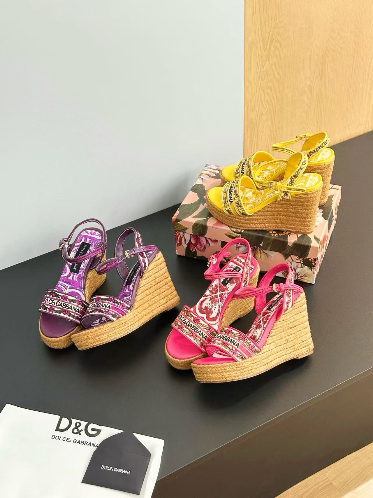 DGの高品質プリントウェッジ麻ロープ底サンダル【50%割引+送料無料】
