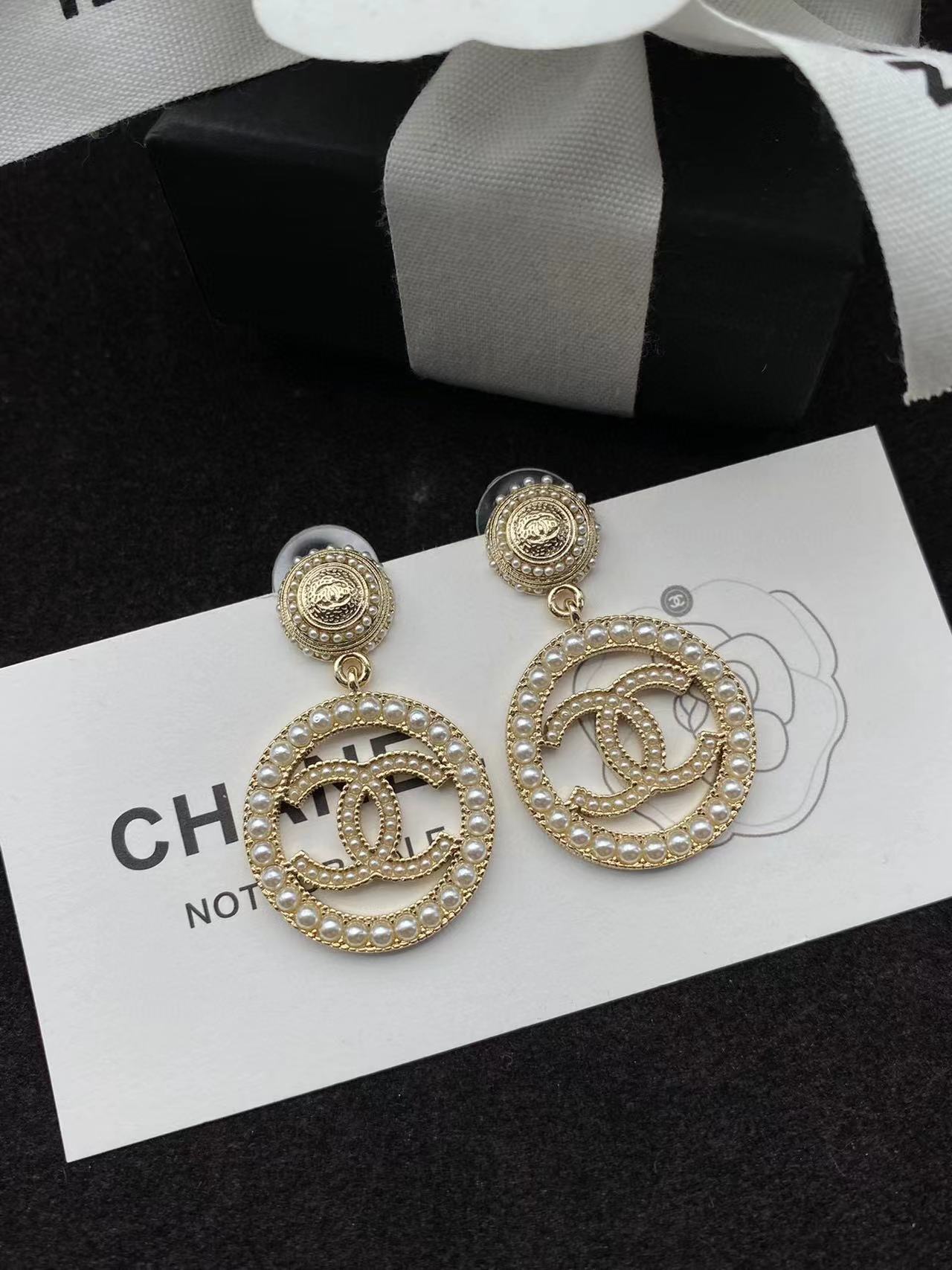 CHANE1 フル ダイヤモンド ダブル C チェーン フープ イヤリング【 50%割引+送料無料】