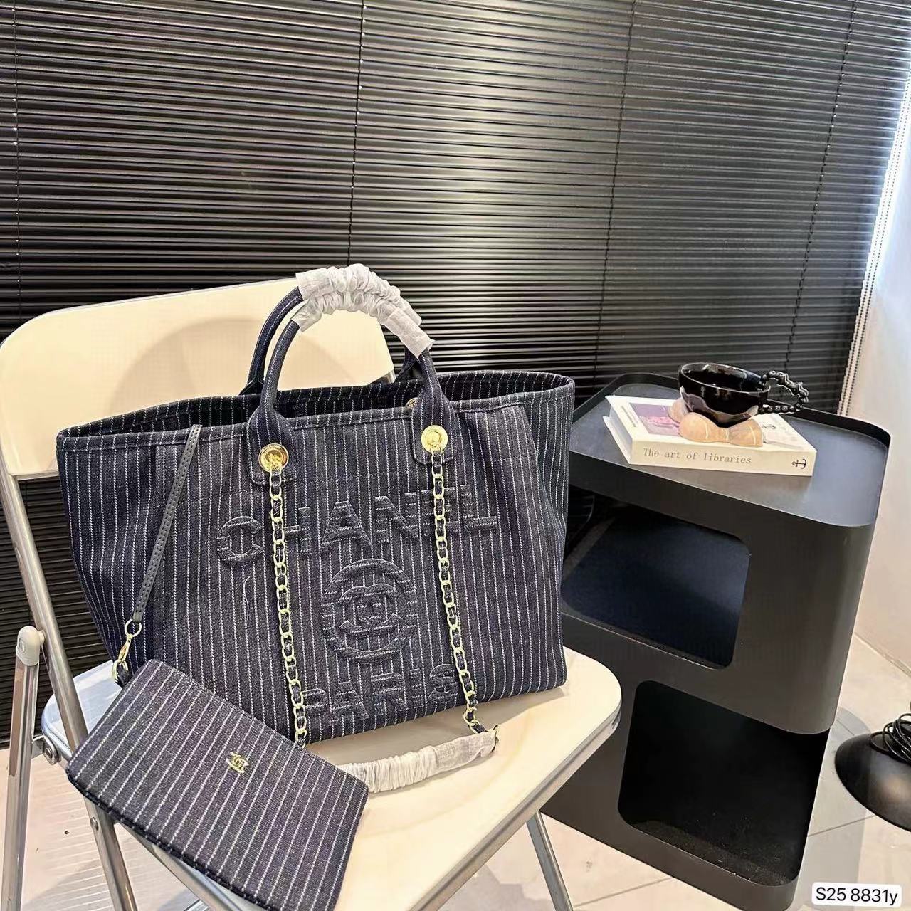 CHANE1 チェーンデニムビーチバッグ【50%割引+送料無料】