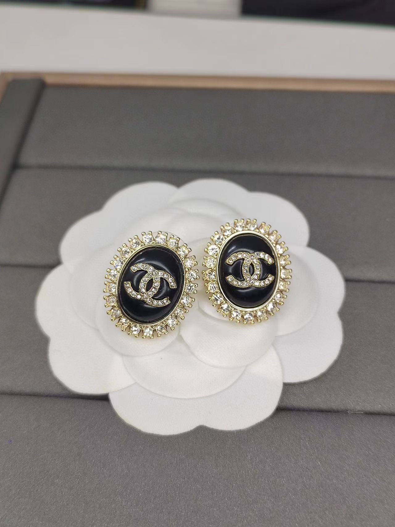 CHANE1 ブラック&ホワイト CC スクエア ダイヤモンド イヤリング【 50%割引+送料無料】