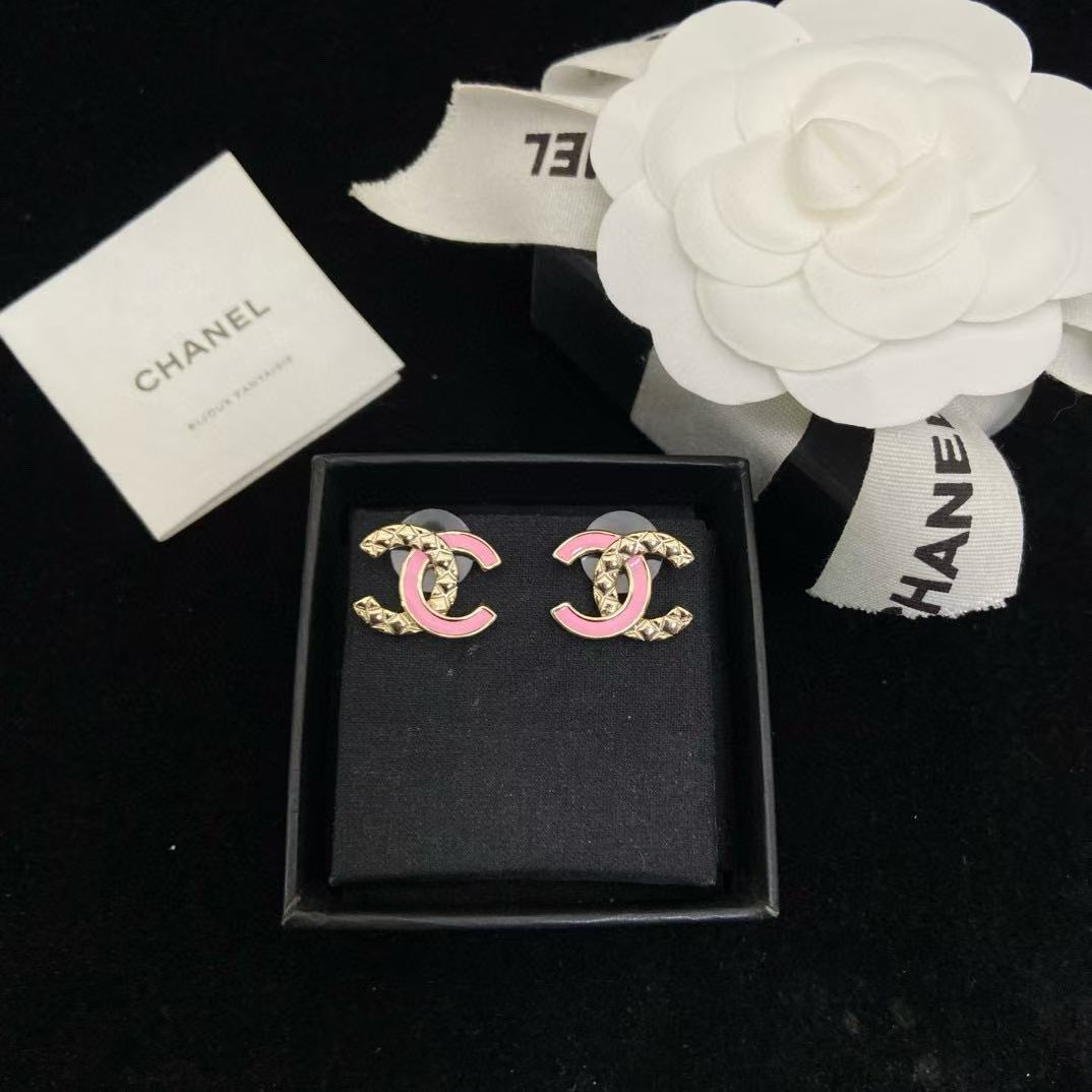 CHANE1 ダブルC フルダイヤモンド ピンクイヤリング【 50%割引+送料無料】