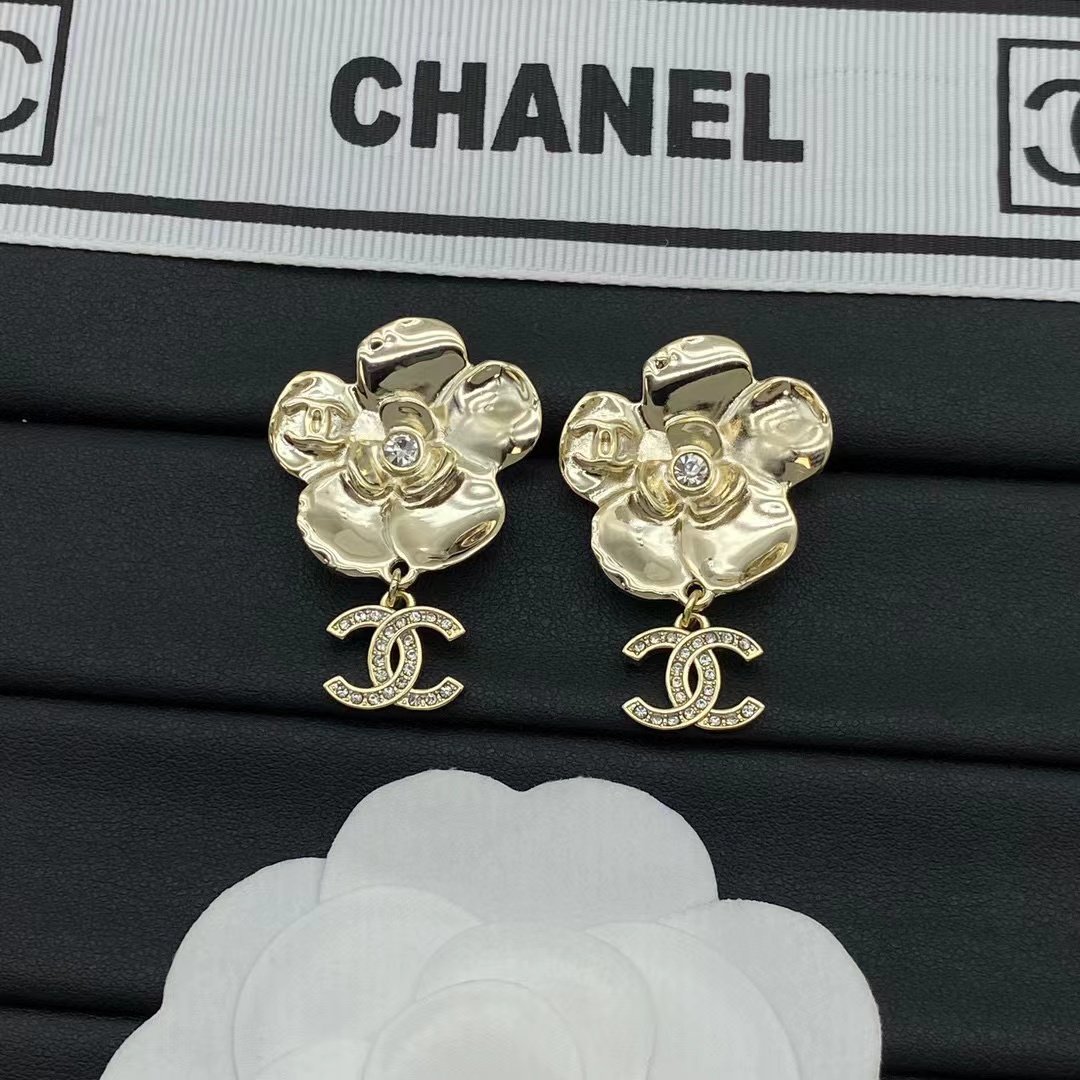 CHANE1 ファイブフラワー ダブルC ダイヤモンド スタッド ピアス【50%割引+送料無料】