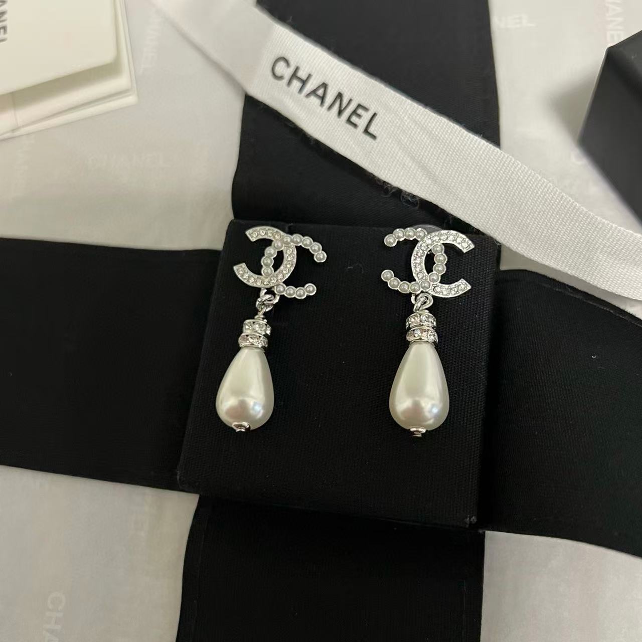 CHANE1 ダブルC ウォータードロップパールイヤリング【50%割引+送料無料】