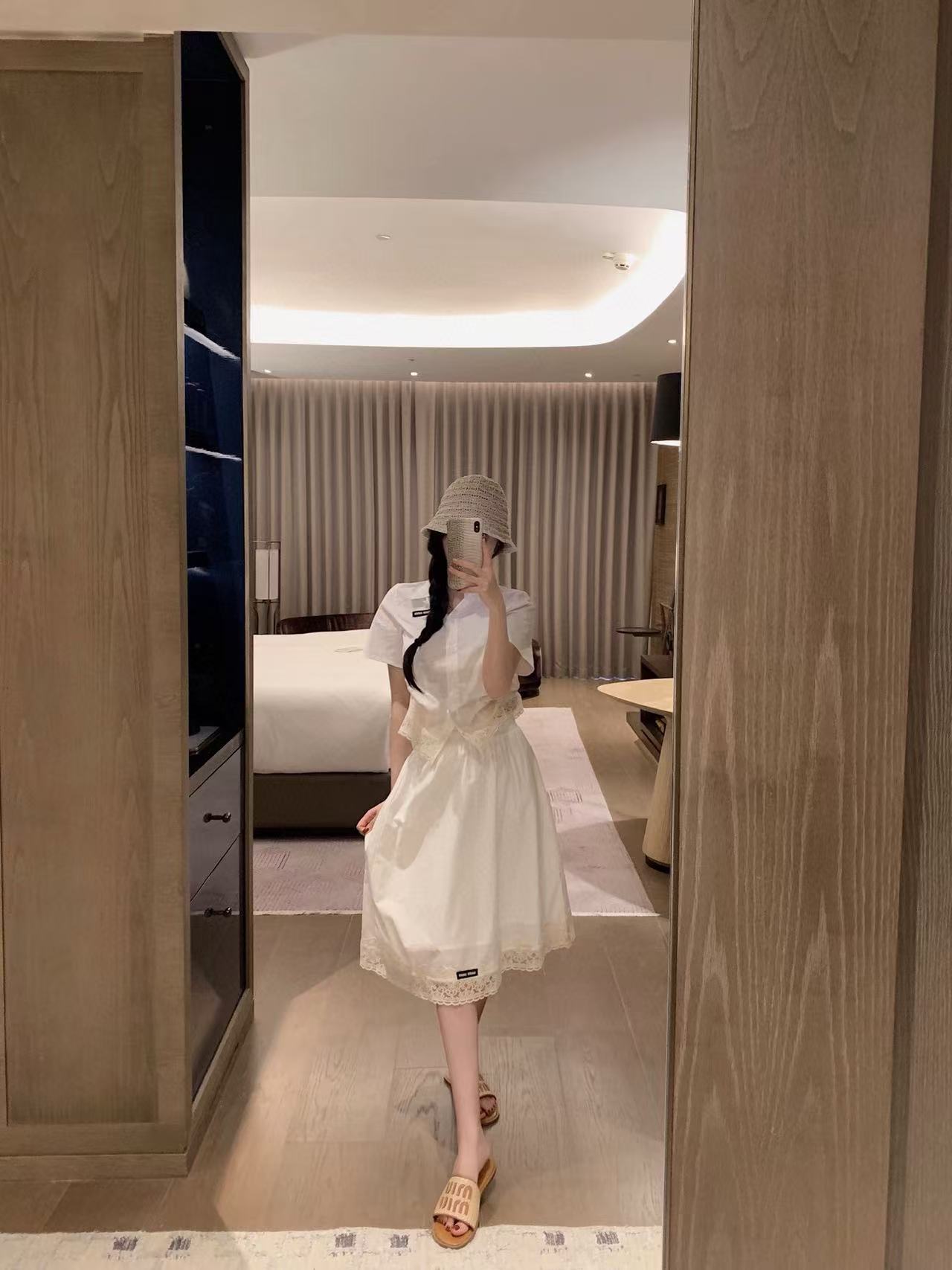 M1UM1U シンプルシャツ+スカート ツーピースセット【 50%割引+送料無料】