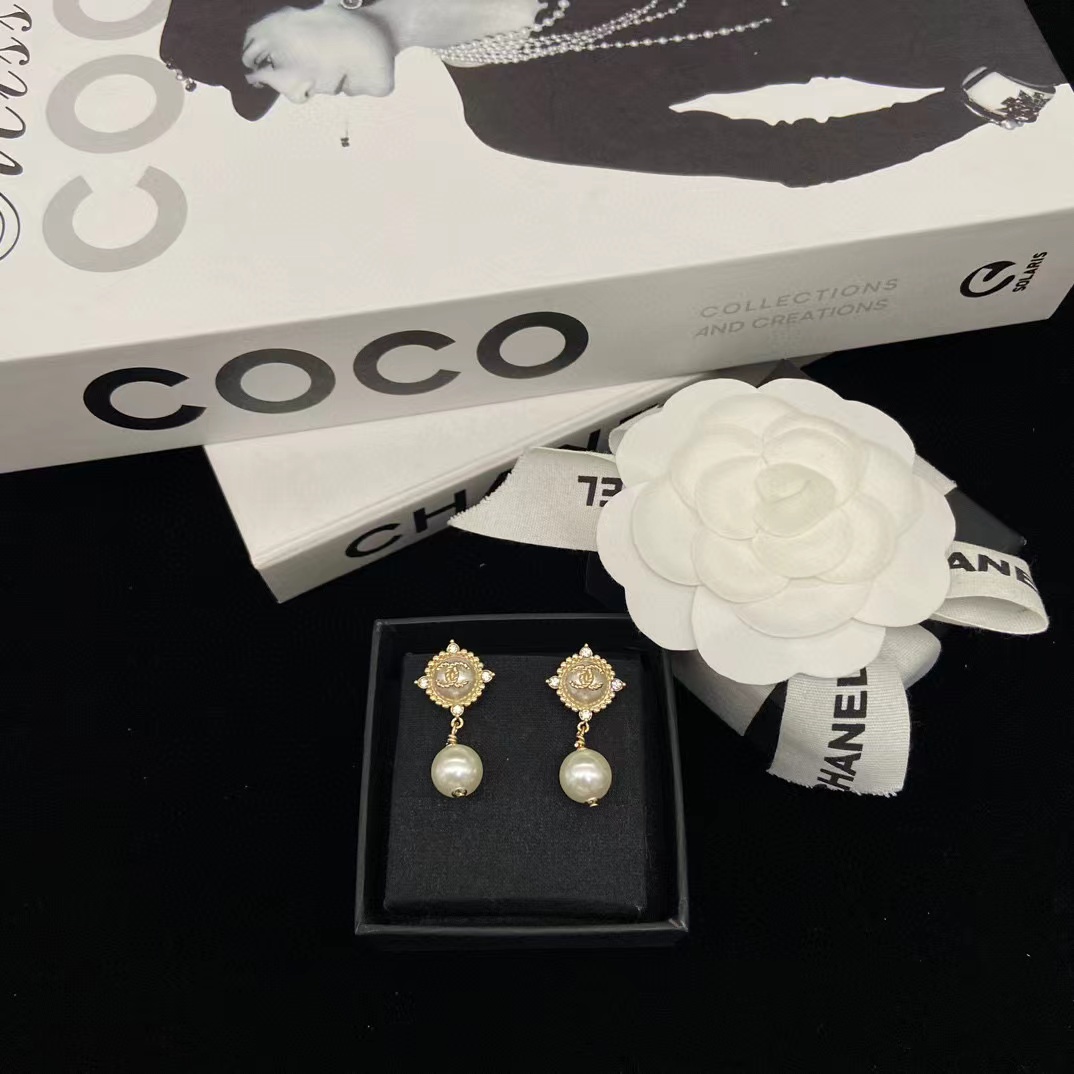 CHANE1 ダブル C パール スタッド ピアス【 50%割引+送料無料】