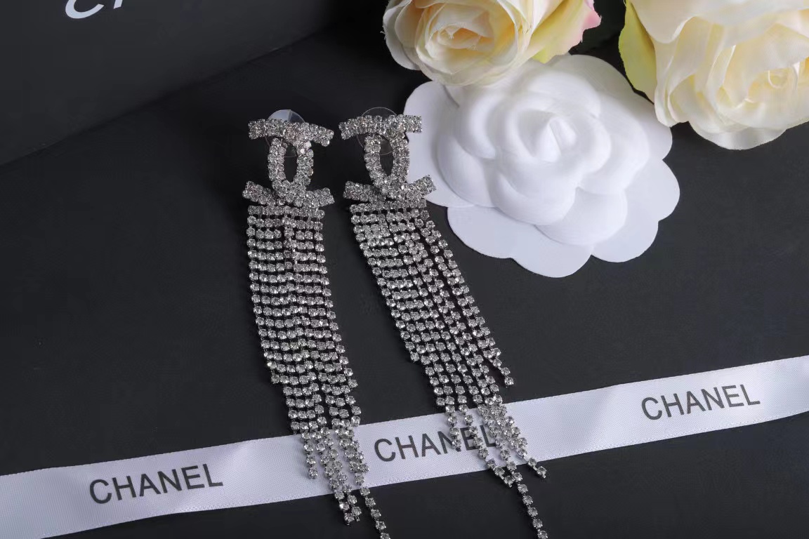 CHANE1 ダブルC ダイヤモンド タッセル イヤリング【50%割引+送料無料】