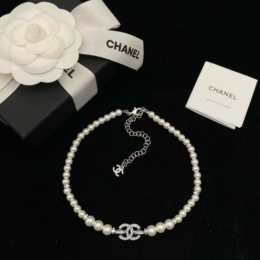 CHANE1 ダブルC フルダイヤモンドパールネックレス【 50%割引+送料無料】