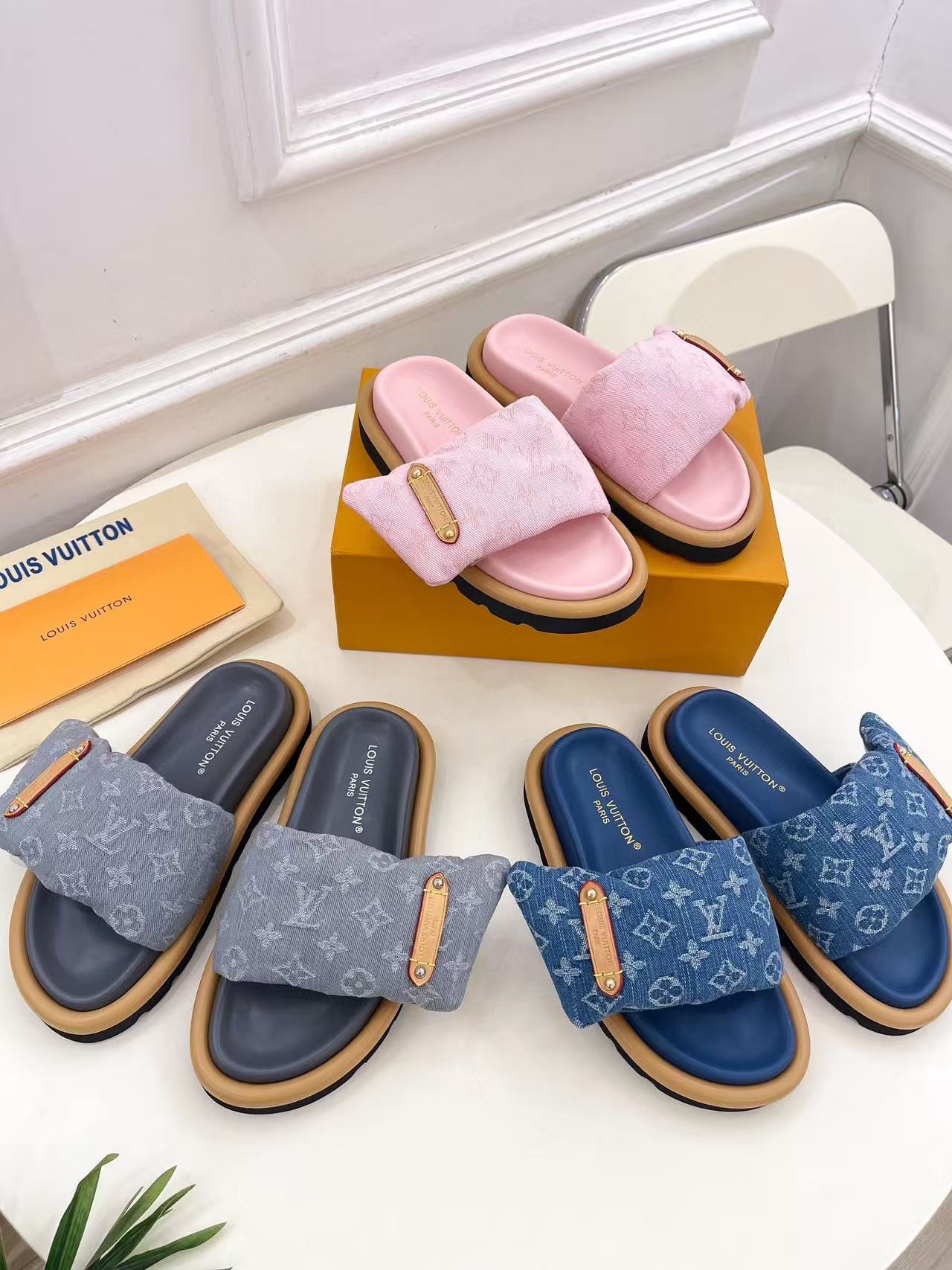LVの高品質デニムダウンスリッパ【50%割引+送料無料】