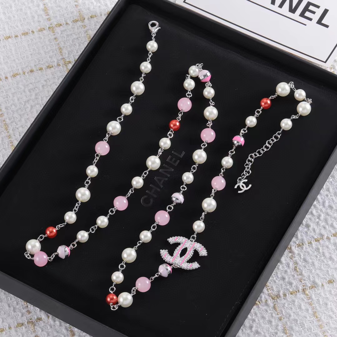 CHANE1 カラフル ダブル C パール ネックレス【50%割引+送料無料】