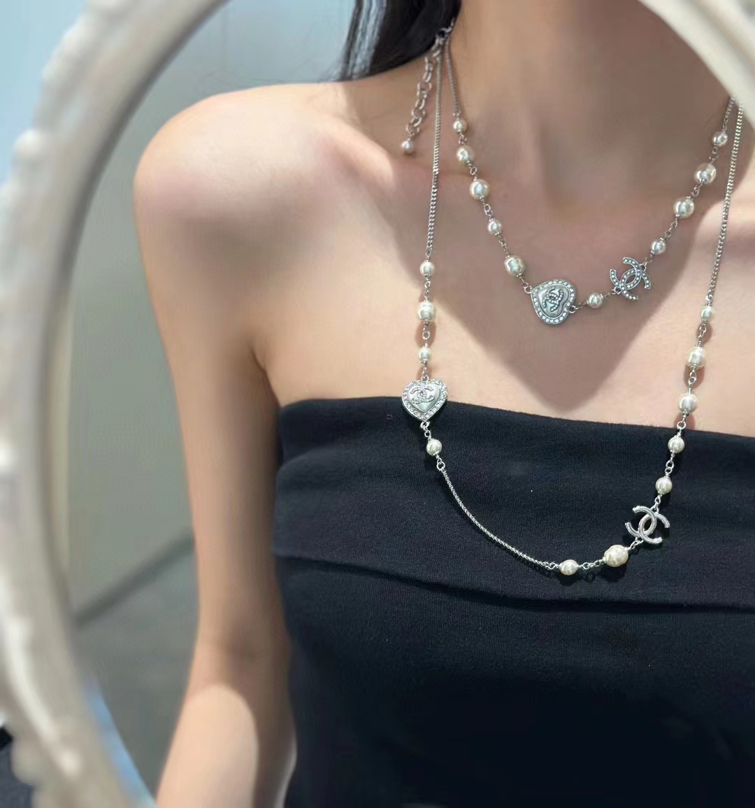 CHANE1 ハートセット ダイヤモンド パール セーター チェーン【50%割引+送料無料】