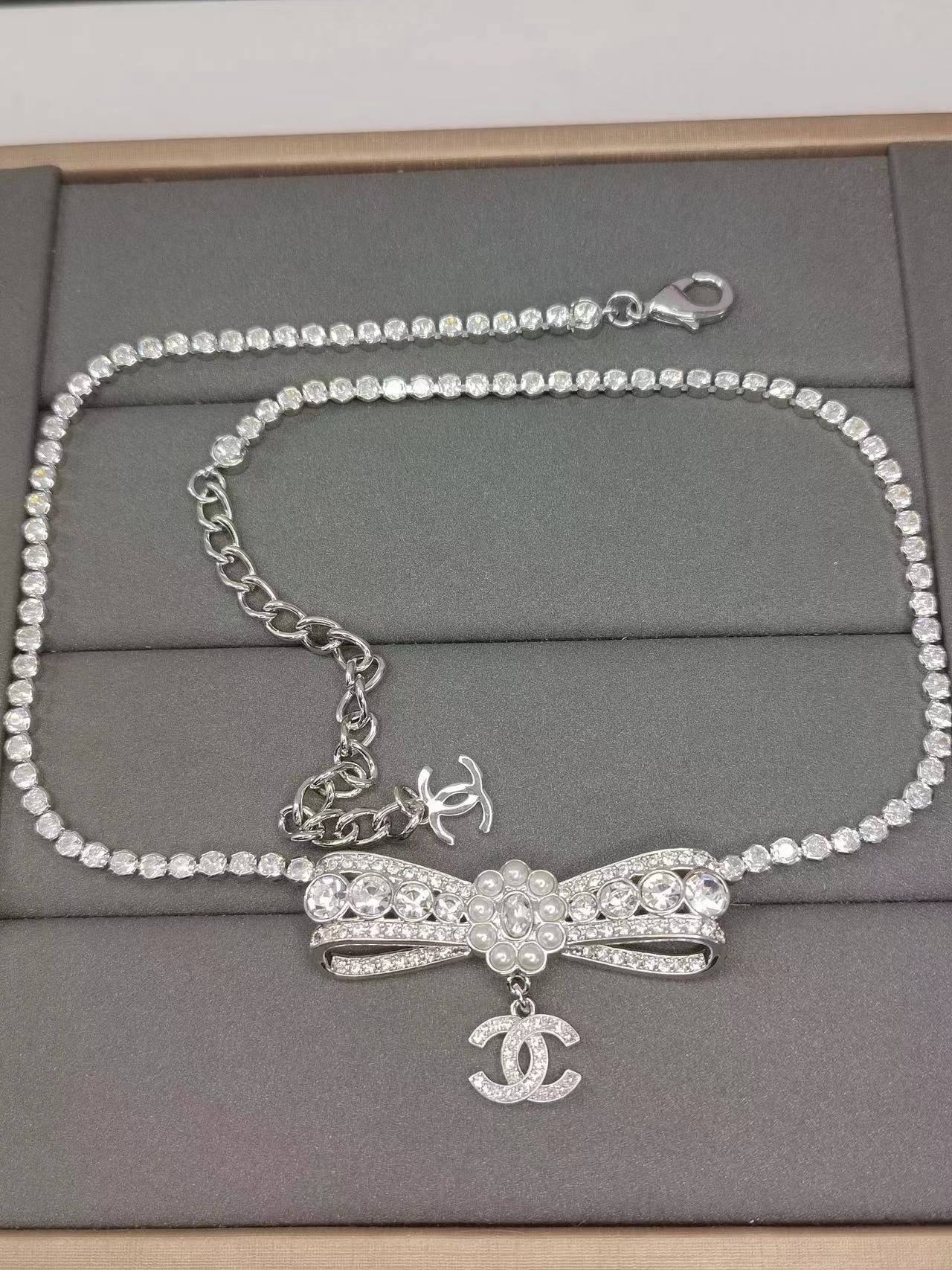 CHANE1 ダイヤモンドスタッズボウ 2層ネックレス【50%割引+送料無料】