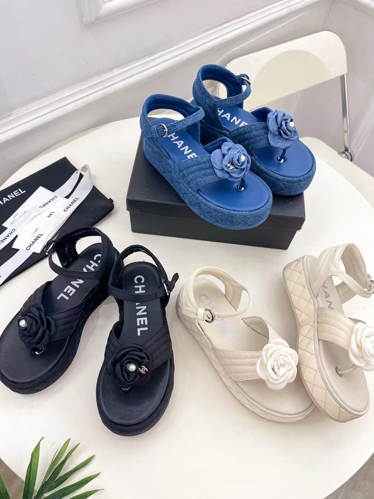 CHANE1 高品質カメリアプラットフォームサンダル【50%割引+送料無料】
