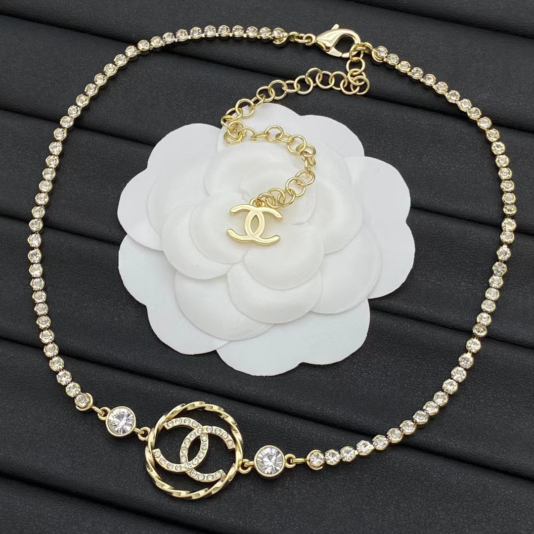 CHANE1 ダブルC サークル ダイヤモンド ネックレス【50%割引+送料無料】