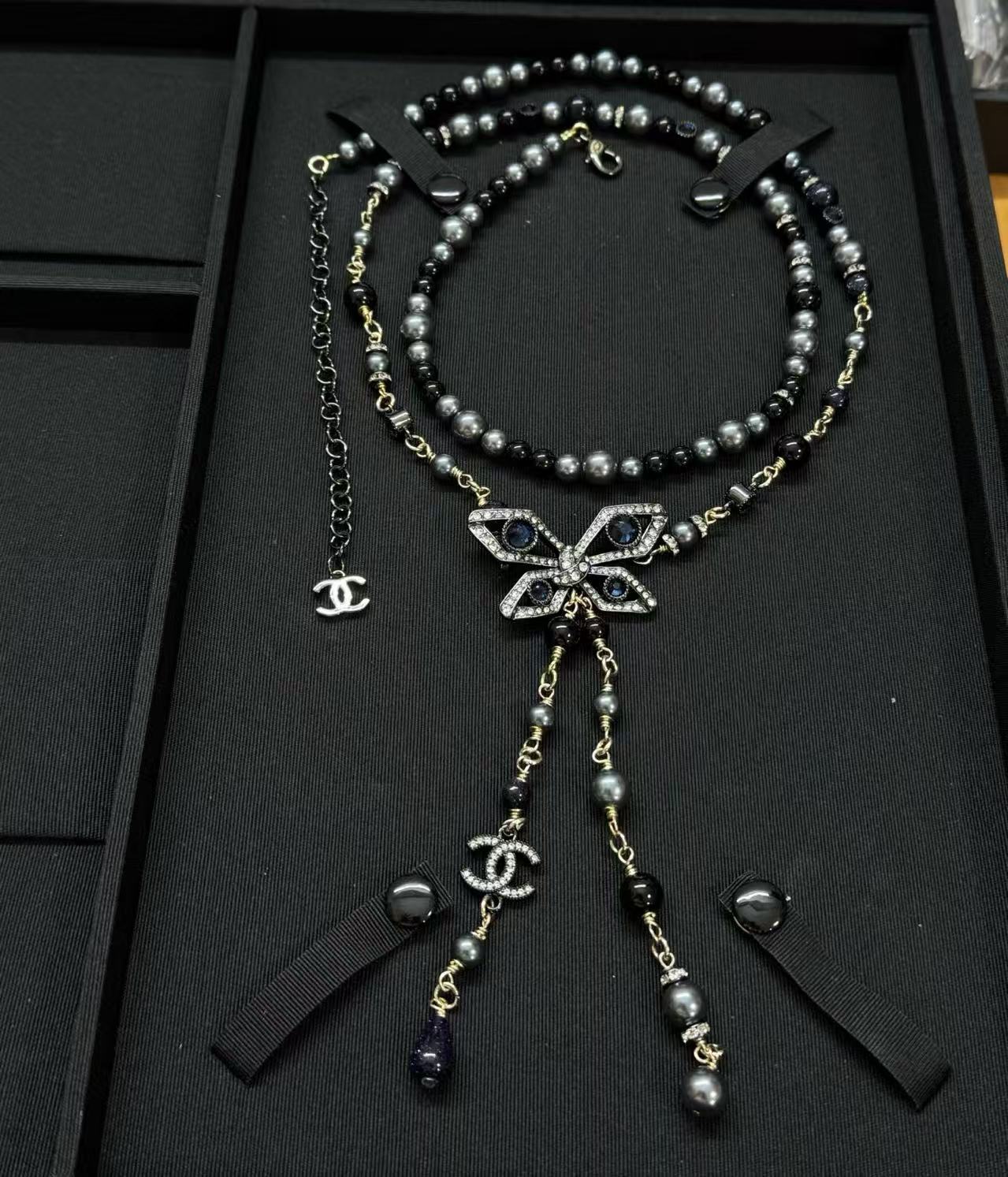 CHANE1 ダイヤモンドとパールのバタフライネックレス【50%割引+送料無料】